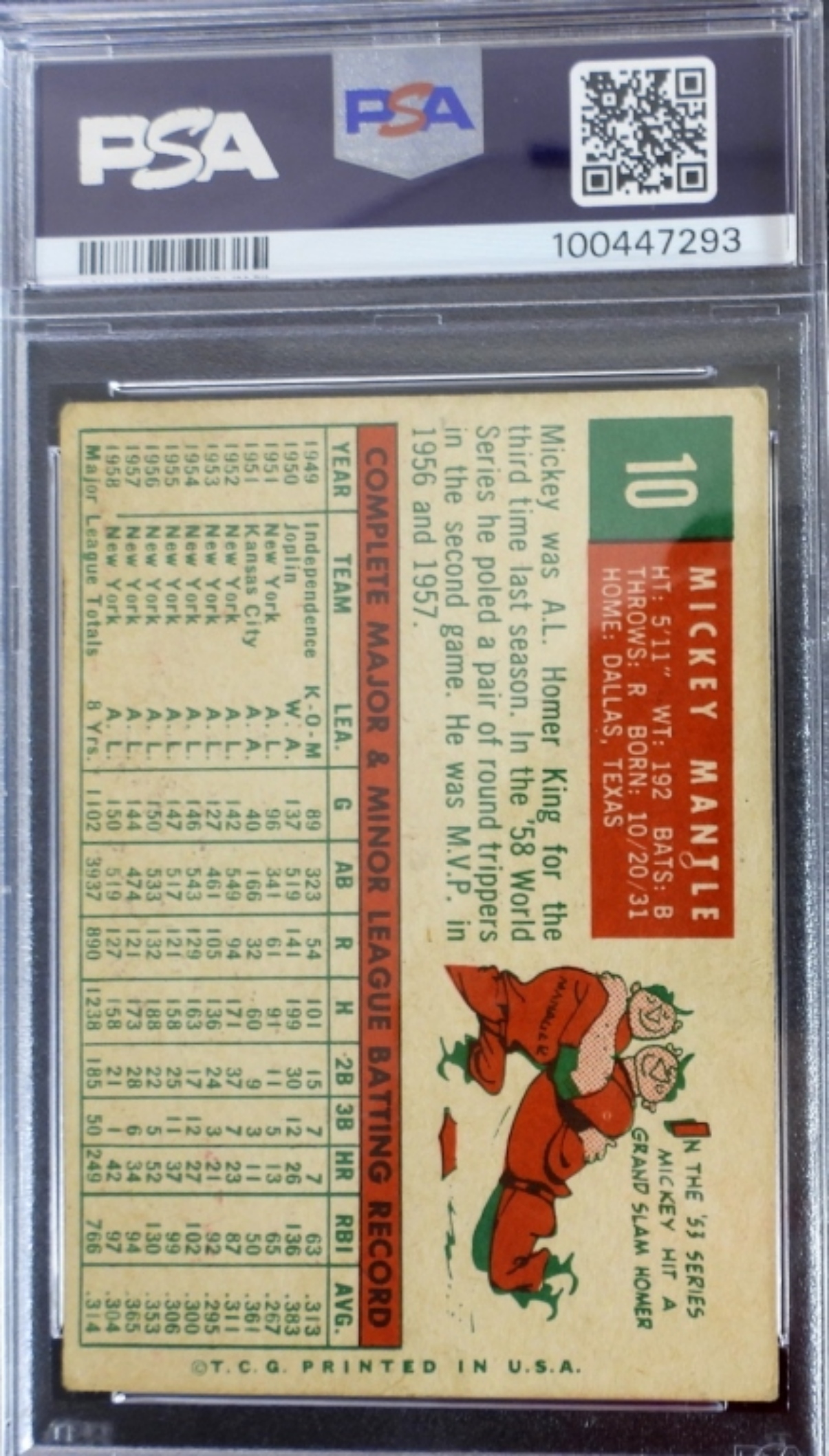 1959 TOPPS #10 MICKEY MANTLE PSA 3