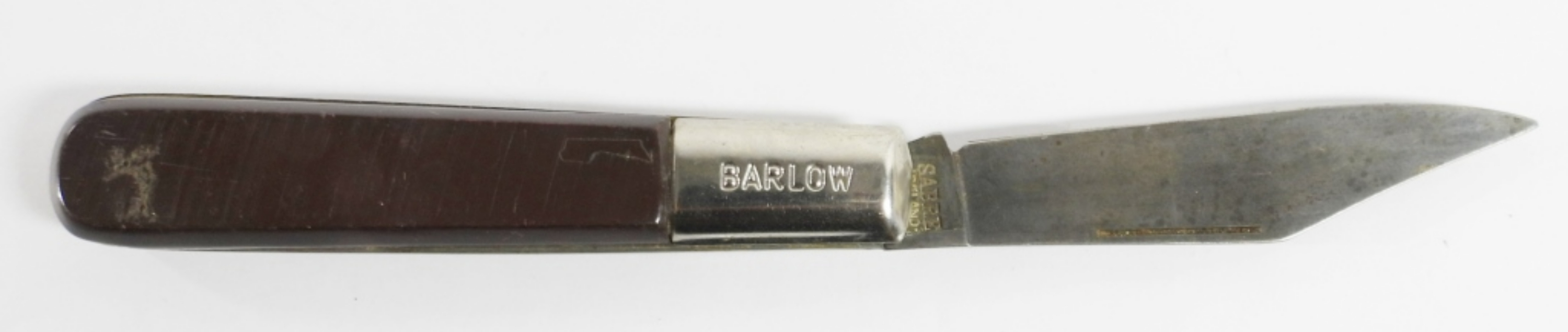 VINTAGE BARLOW SABRE IRELAND SINGLE BLADE POCKET KNIFE. BROWN HANDLE , 21″ OPEN