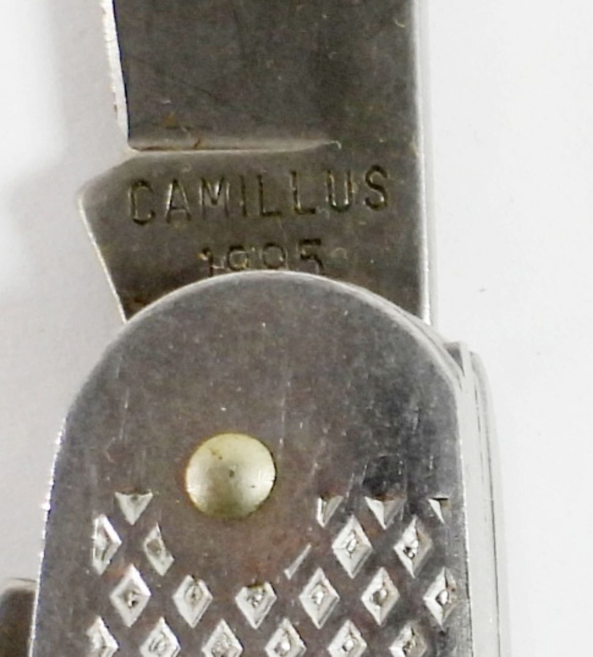 VINTAGE 1995 CAMILLUS FOLDING POCKET KNIFE ,IN BOX . 201/2 ” BLADE WITH CAN & BOTTLE OPENER