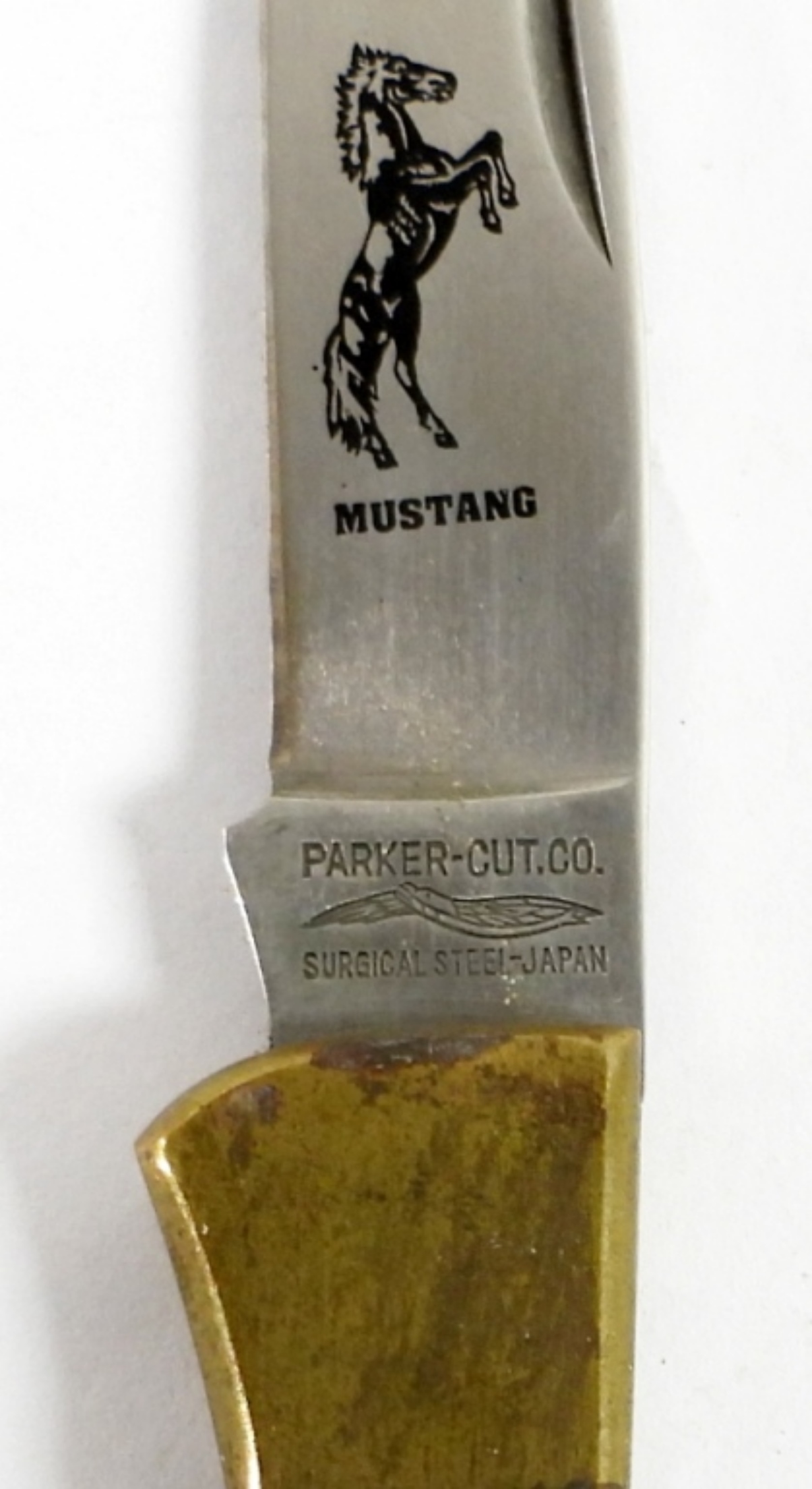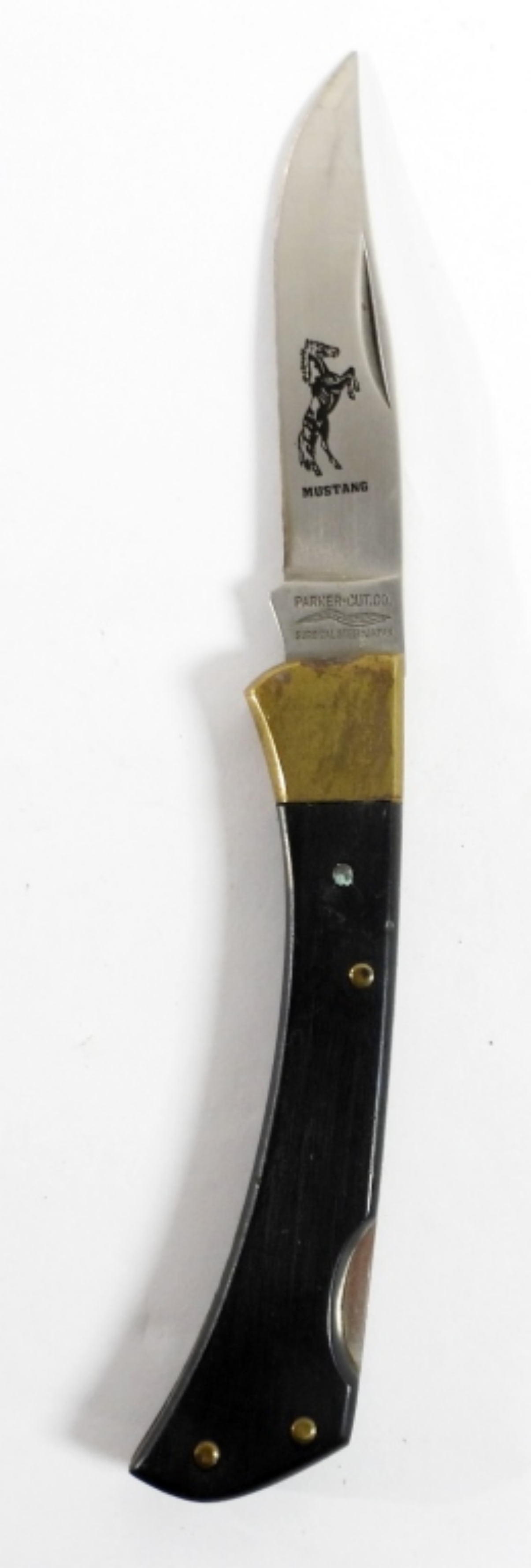 PARKER CUT CO. MUSTANG LOCK BACK KNIFE. SURGICAL STEEL7″ OPEN BLACK HANDLE