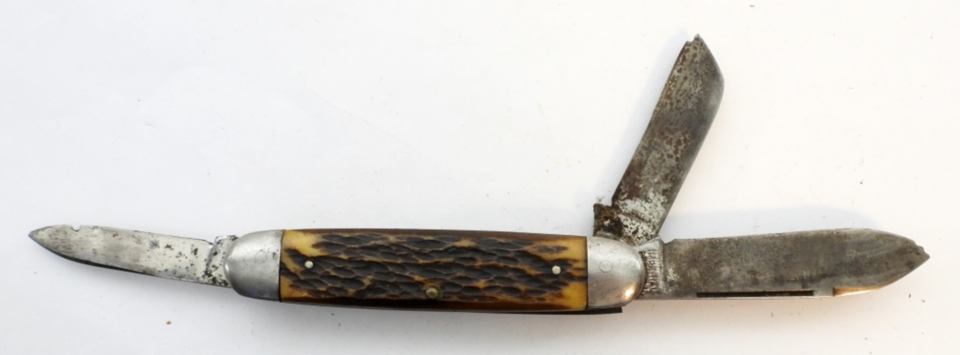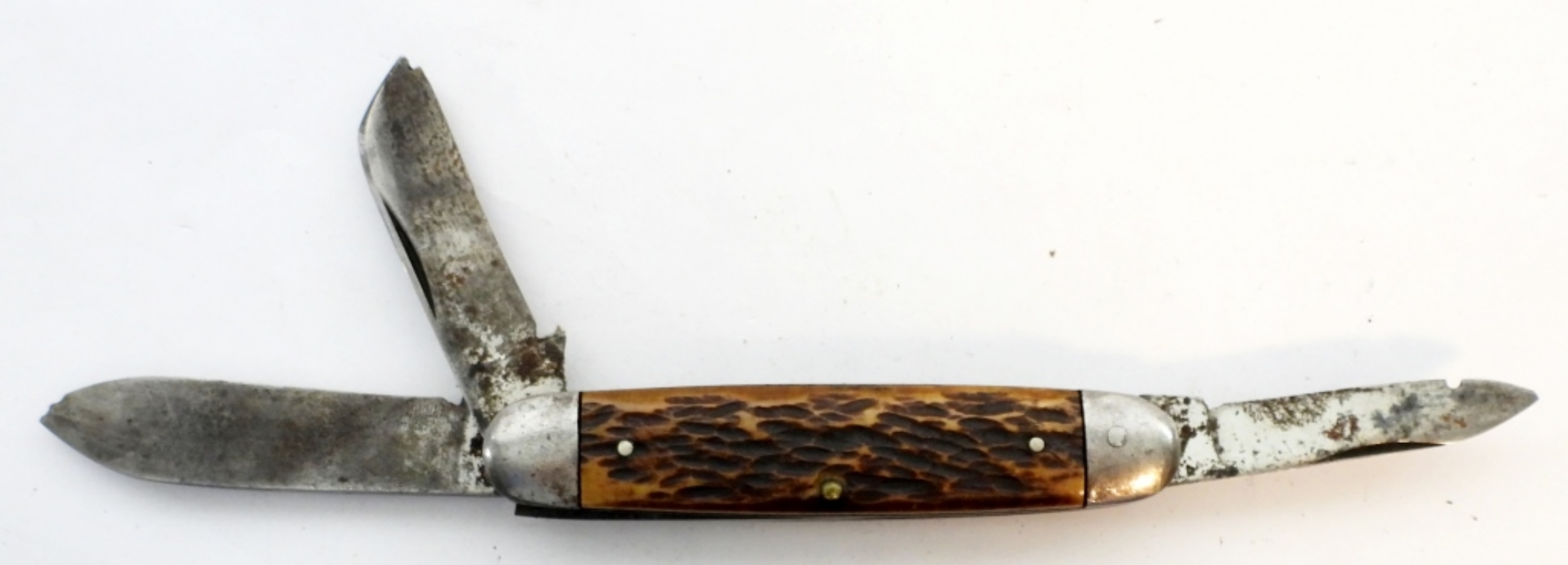 VINTAGE IMPERIAL 3 BLADE FOLDING POCKET KNIFE, 8″ OPEN , BONE HANDLE