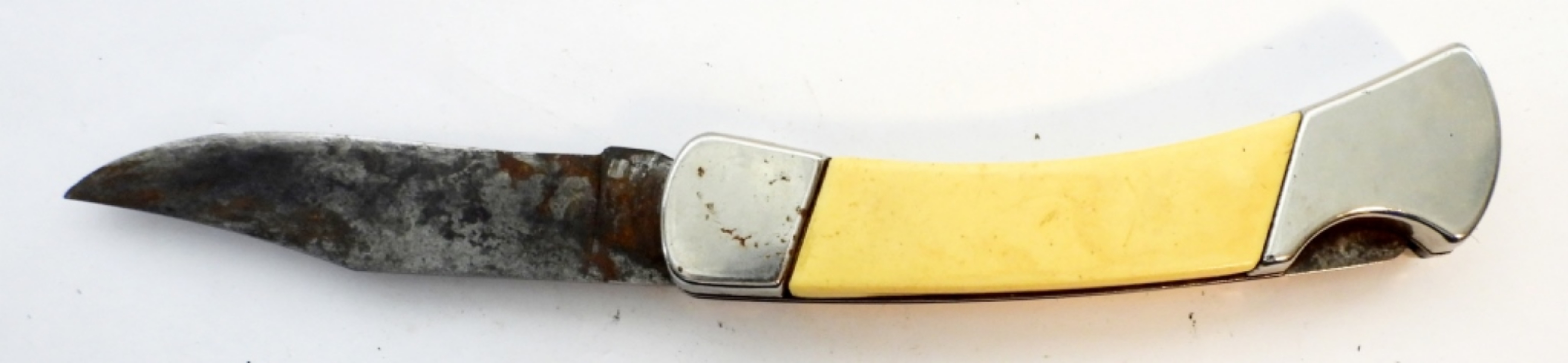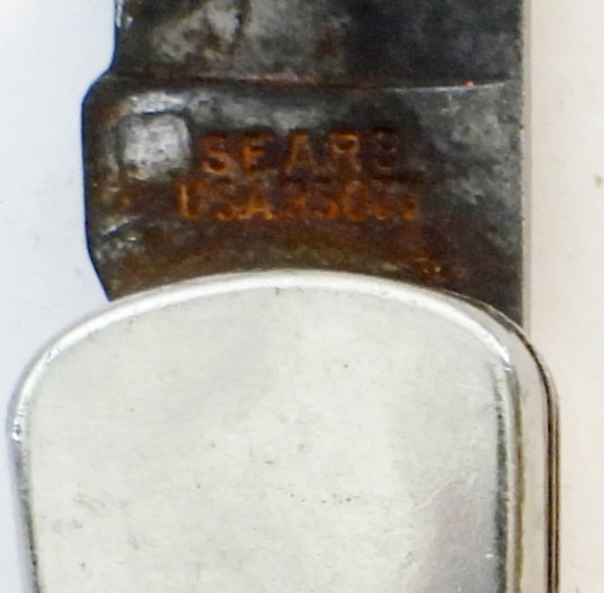 VINTAGE SEARS LOCK BACK KNIFE,4″ BLADE WITH A YELLOW HANDLE