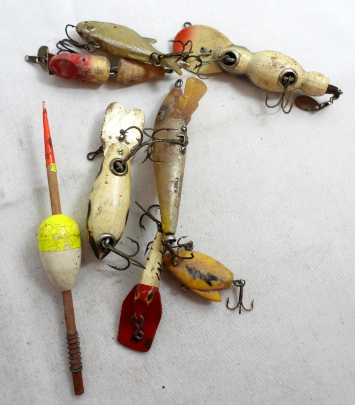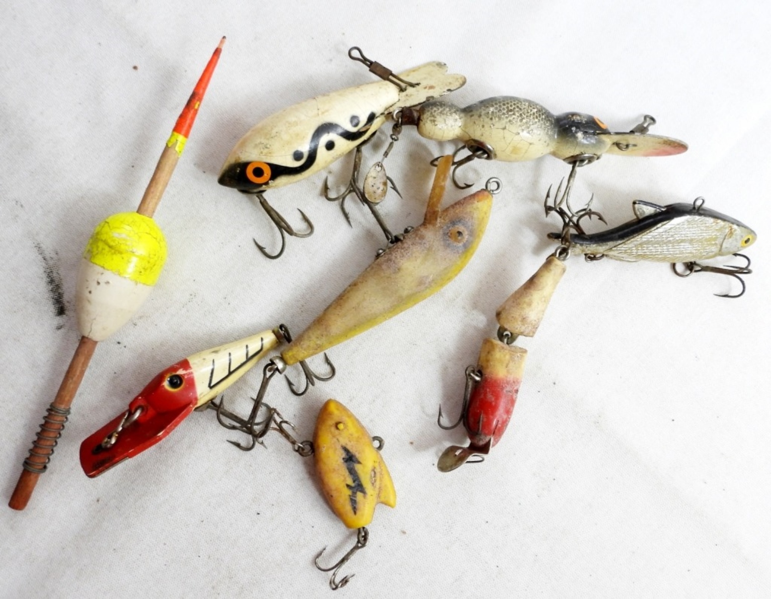 (8) VINTAGE FISHING LURES .VINTAGE FRED ARBOGAST HUSTLER CRANKBAIT LURE , RED HEAD WHITE BODY AND MORE