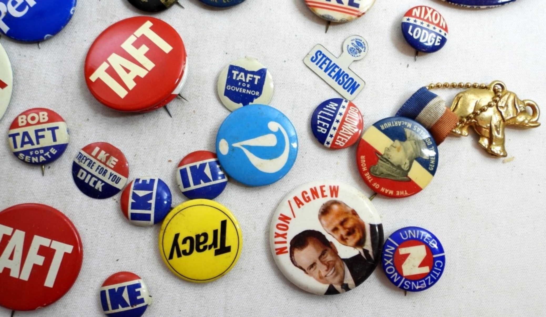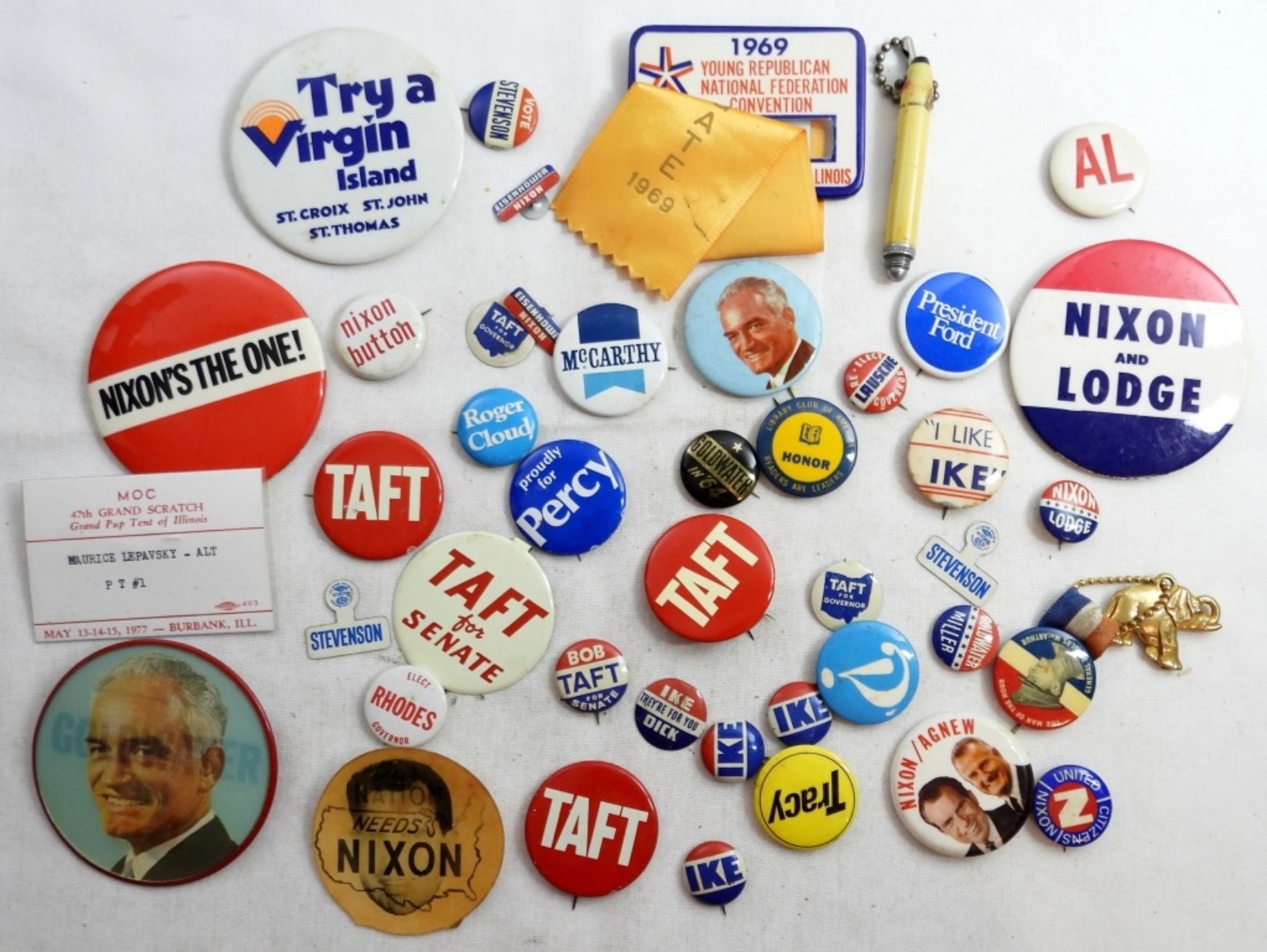 (40) VINTAGE REPUBLICAN PINS, TAFT , NIXON, TRACY , STEVENSON & MORE
