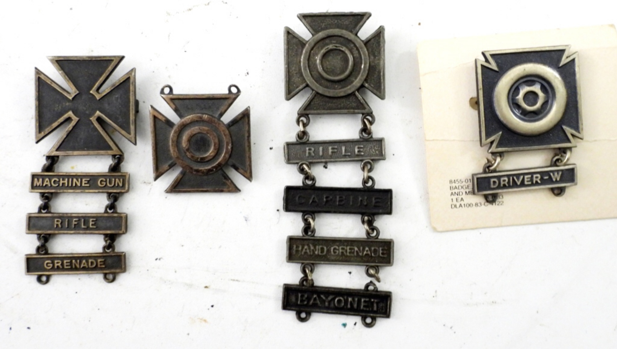 4 U.S. MILITARY MARKSMAN MEDALS (2) ARE STERLING SILVER