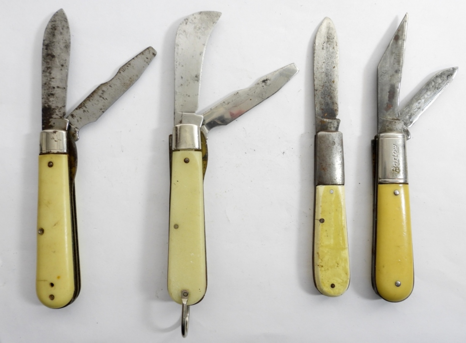 (2) ELECTRICIAN (1) TWO BLADE BARLOW (1) SINGLE BLADE BARLOW – COLONIAL PROV USA, SOME WEAR