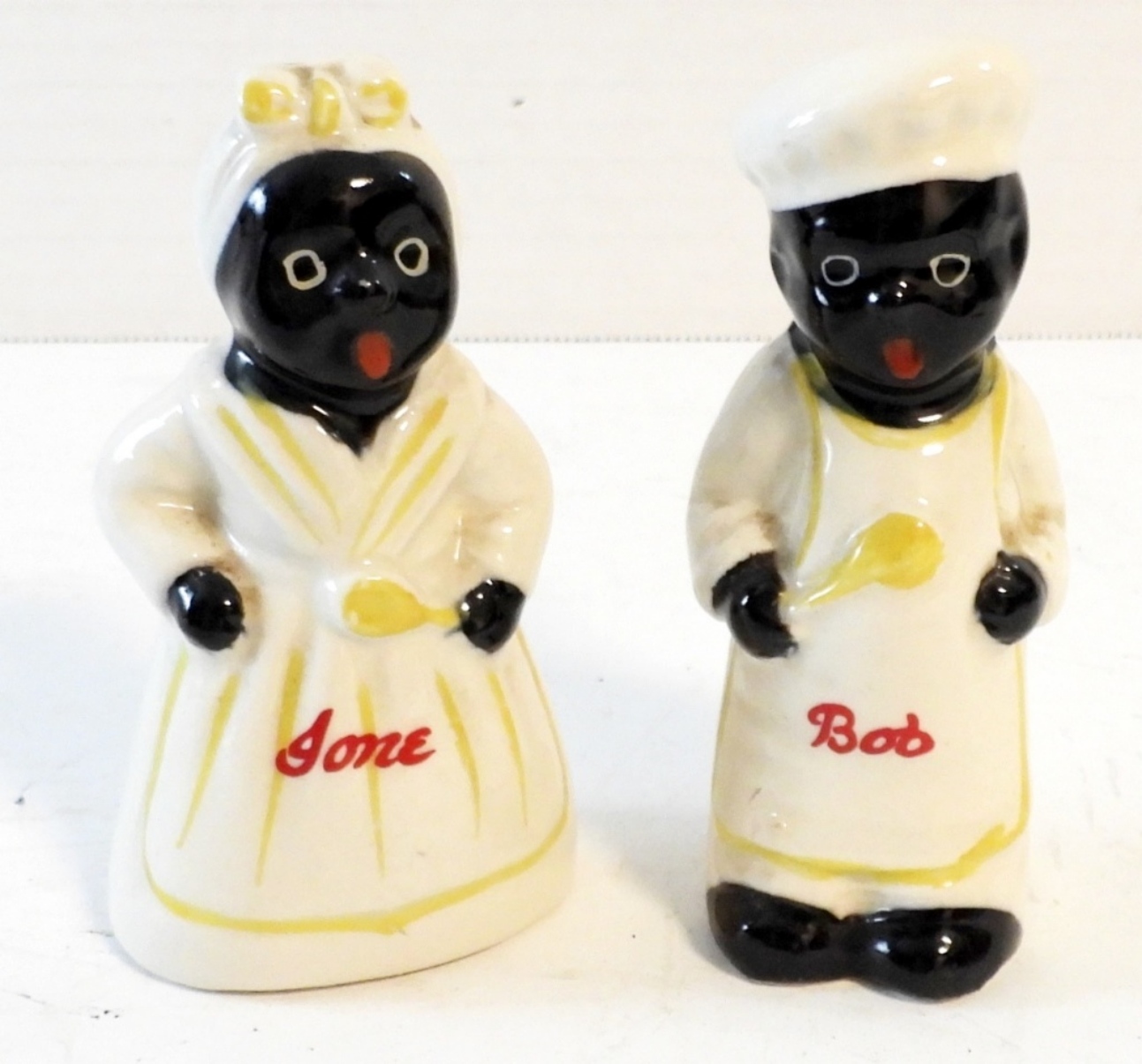 VINTAGE MAMMY& CHEF SALT AND PEPPER SHAKERS , WHITE OUTFIT (4 IN TALL)