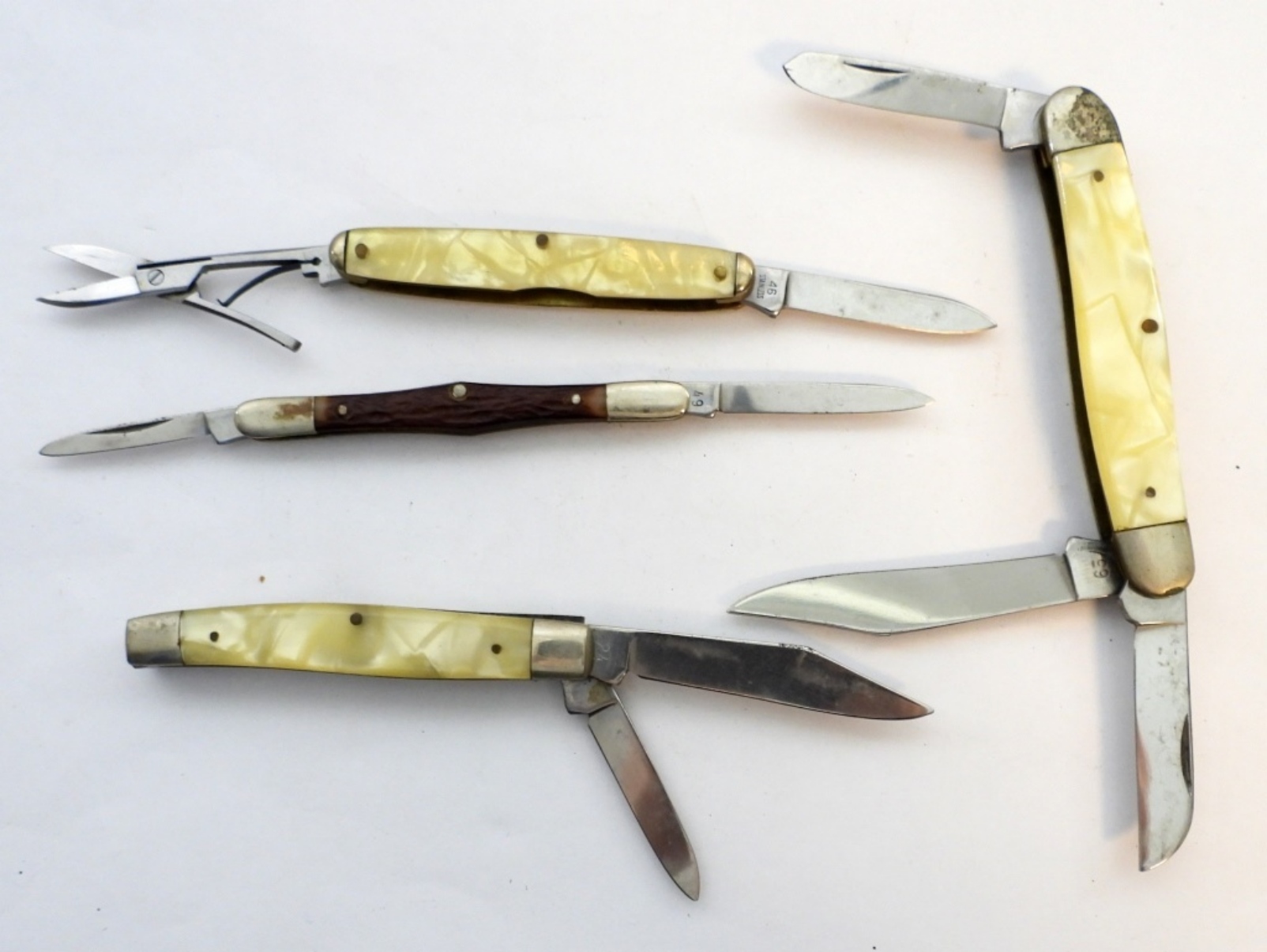 ALL DIFFERENT – LIGHTLY USED / NEARLY NEW – (2) SHOW LIGHT RUST SPOT ON HANDLE – BLADES GOOD