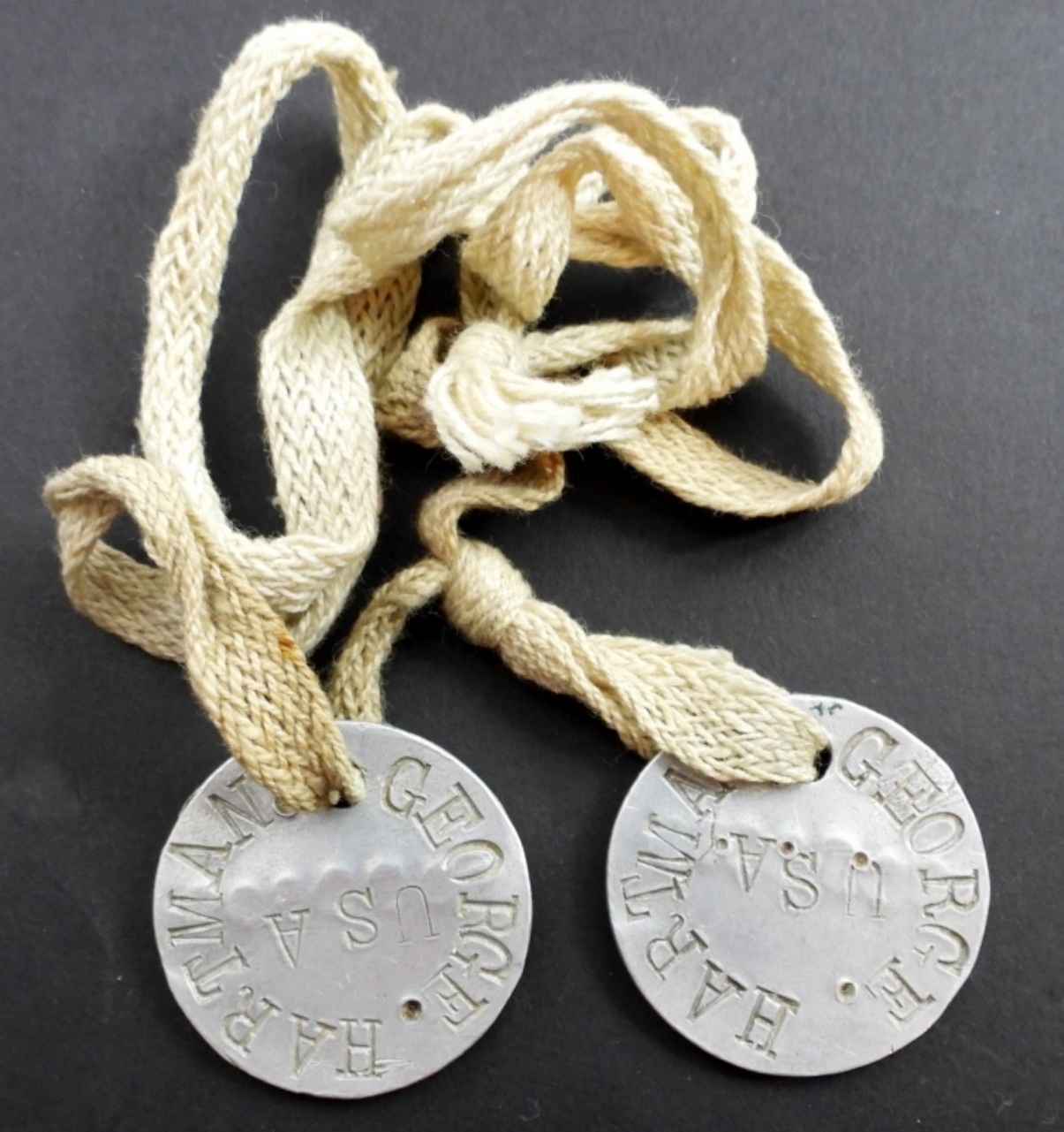 VINTAGE SET OF WWI ARMY DOG TAGS.