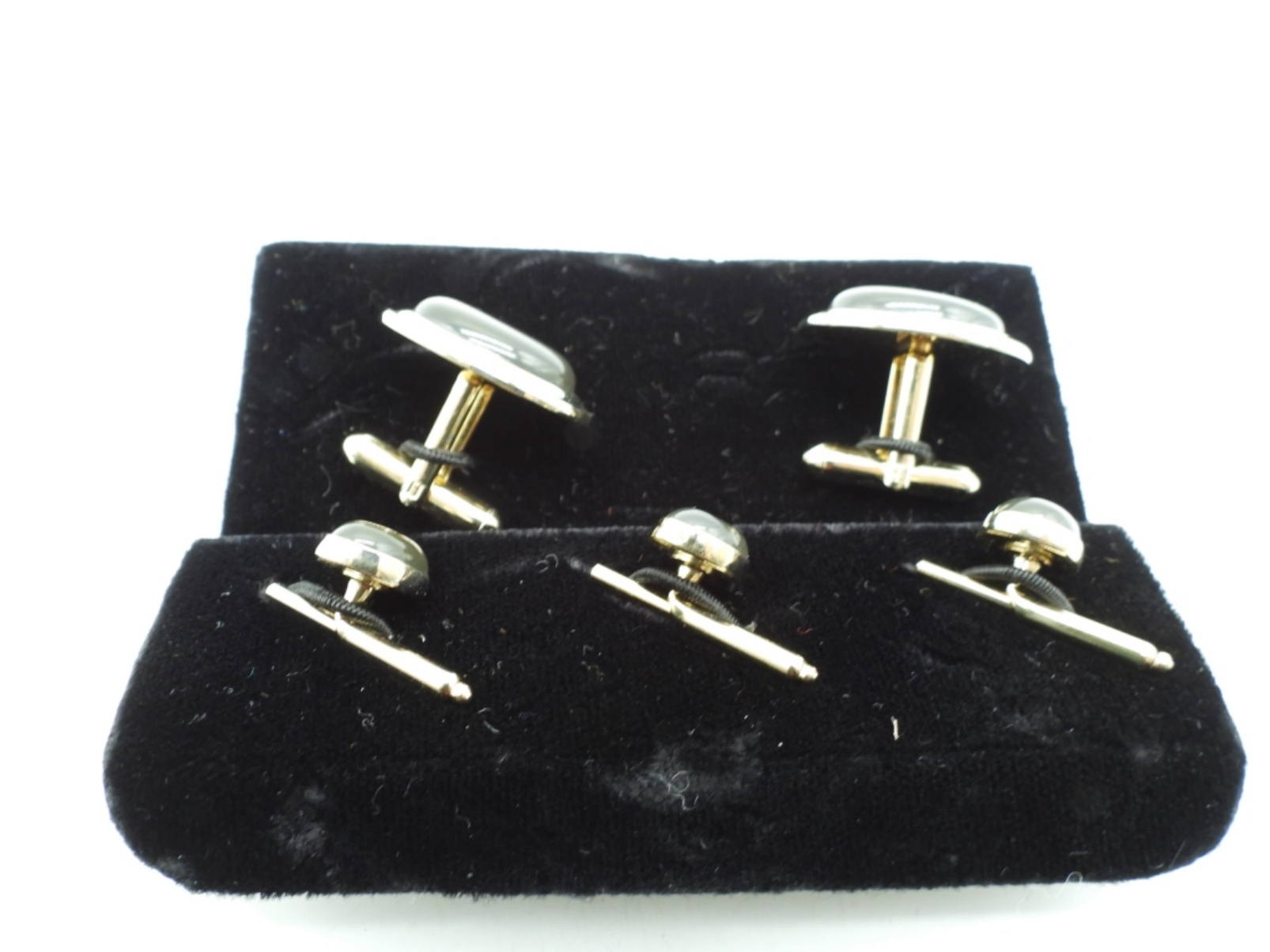 SWANK BRAND, GOLD TONE GEMSTONE CUFF LINK, FULL SET