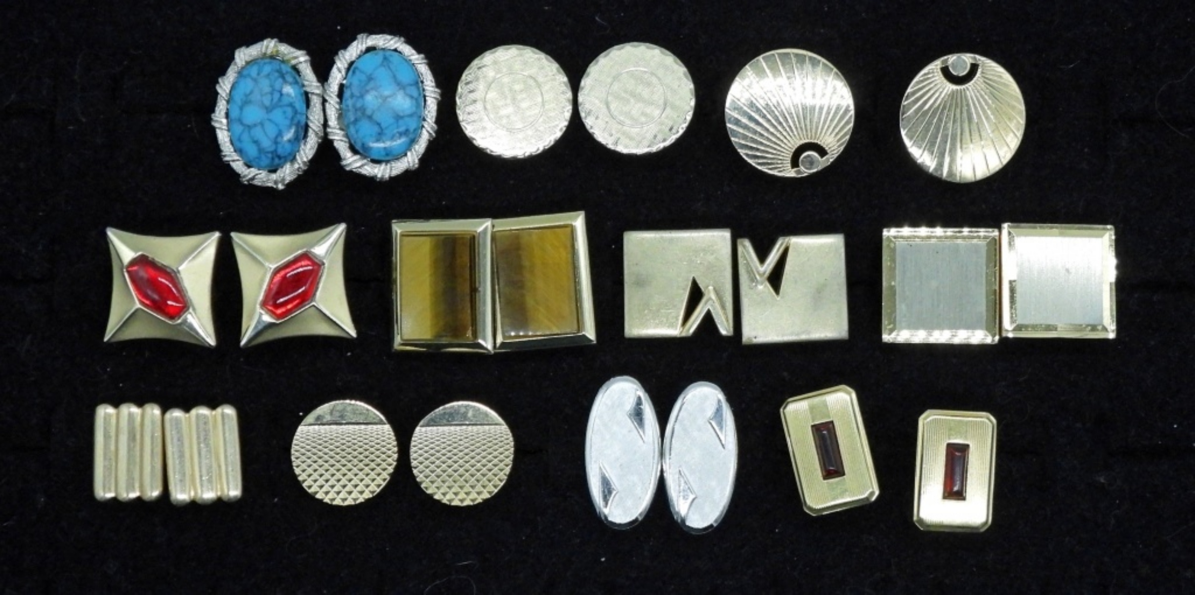 ELEVEN PAIR OF GOLD AND SILVER TONE CUFF LINKS, VINTAGE
