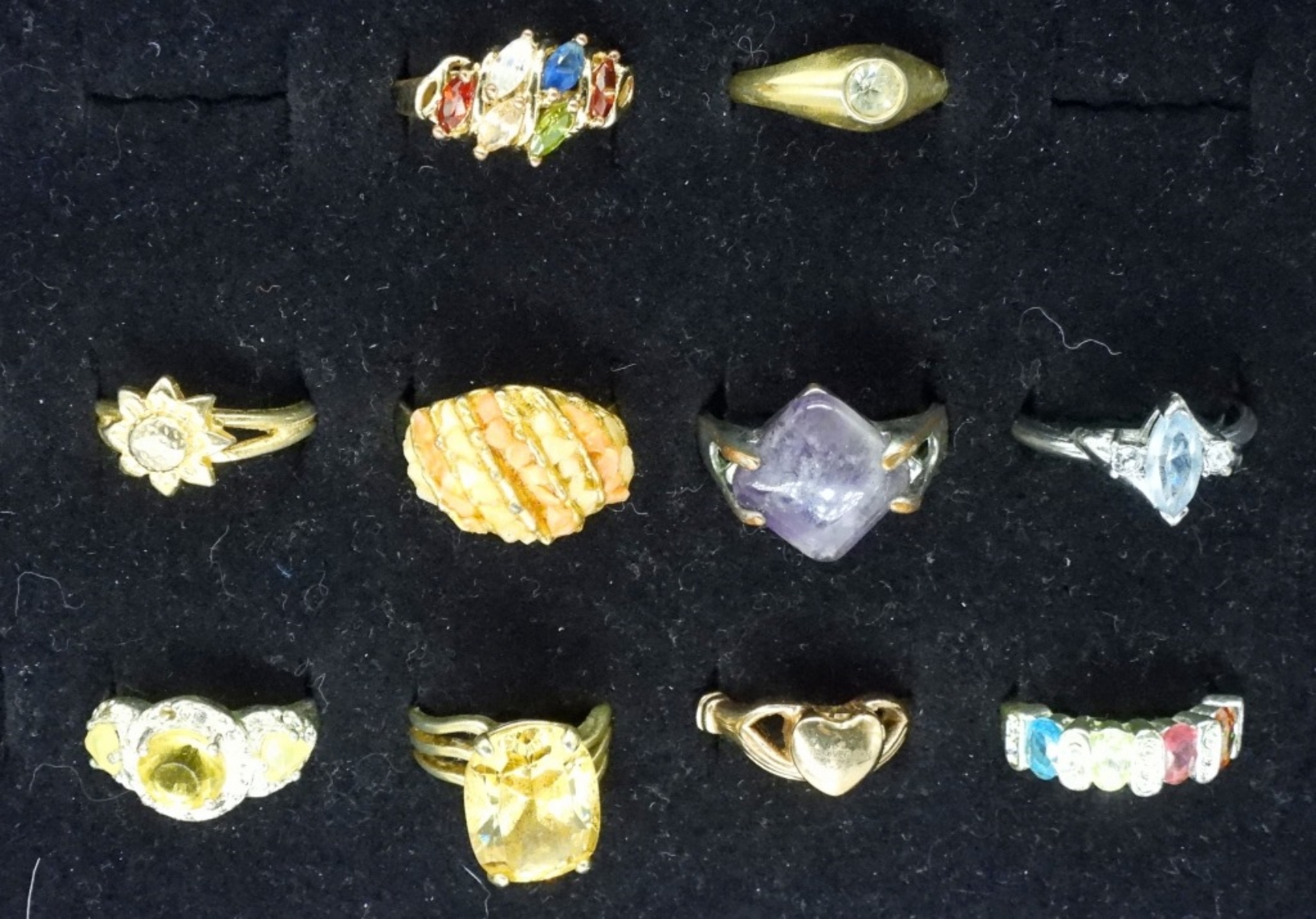 TEN LADIES FASHION RINGS, SIZES 6-9