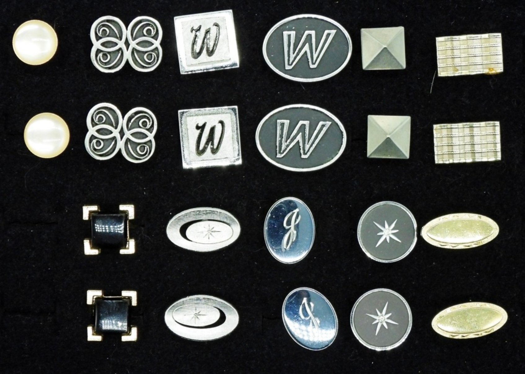 ELEVEN PAIR OF GOLD AND SILVER TONE MEN’S CUFFLINKS. VINTAGE AND MODERN