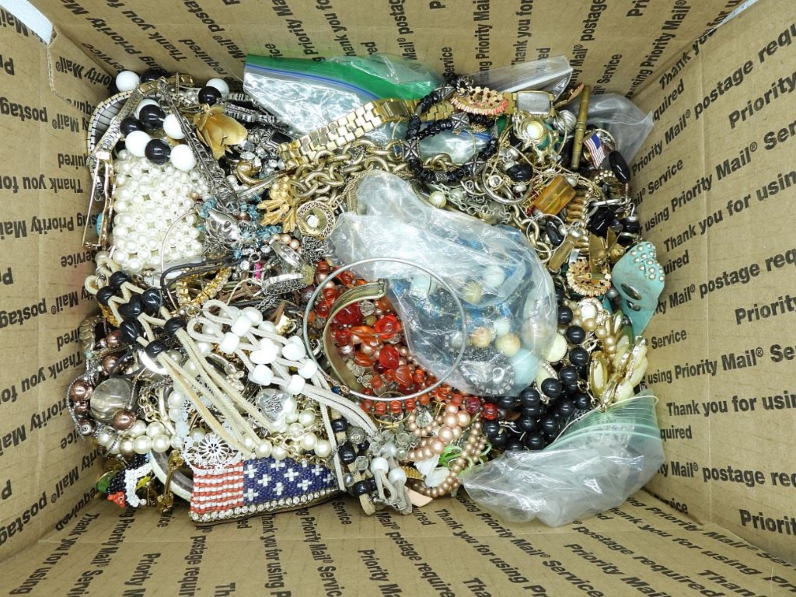 MAY BE BROKEN, TARNISHED, IN NEED OF REPAIR, ETC. SOME WEARABLE, GREAT FOR CRAFTING! MEDIUM/LARGE FLAT RATE BOX