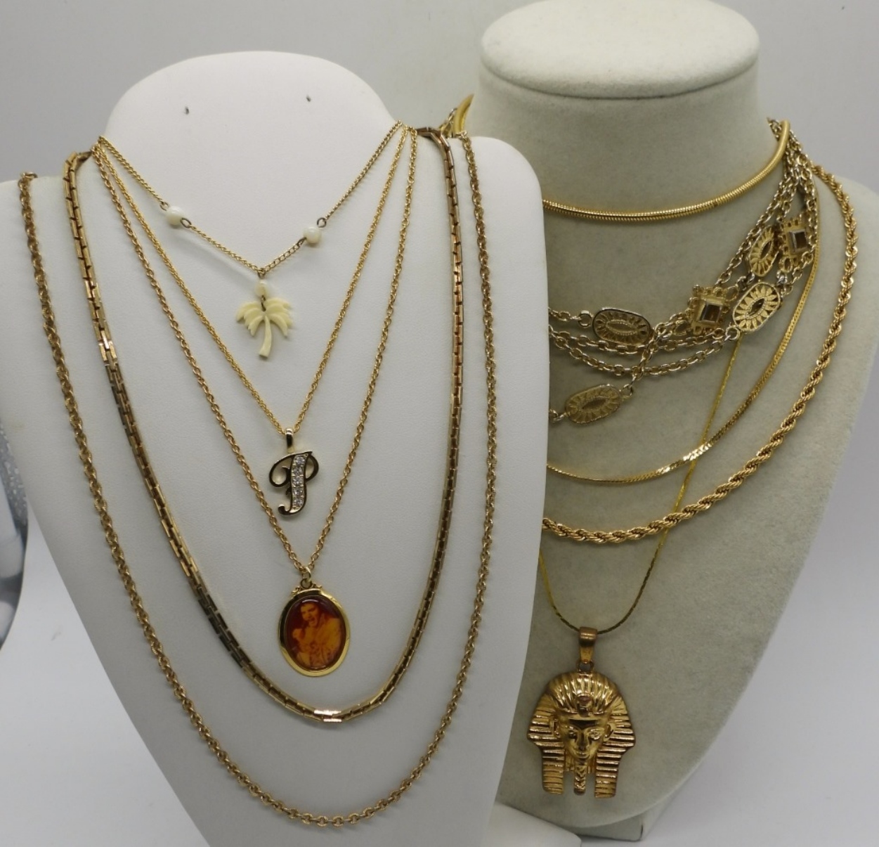 TEN GOLD TONE FASHION NECKLACES & CHAINS. 16″-56″