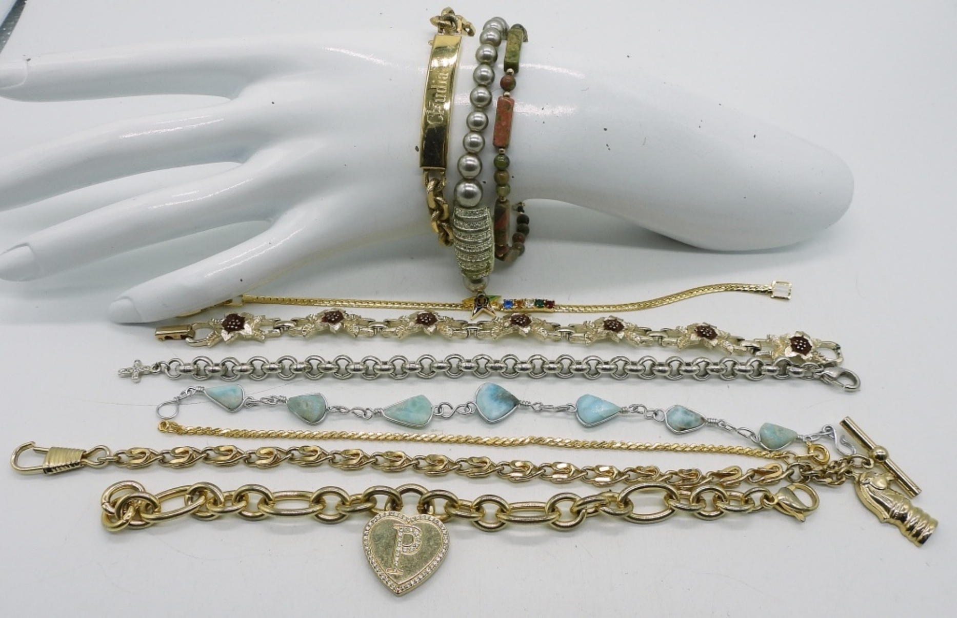 TEN GOLD AND SILVER TONE FASHION BRACELETS, 7-9″.