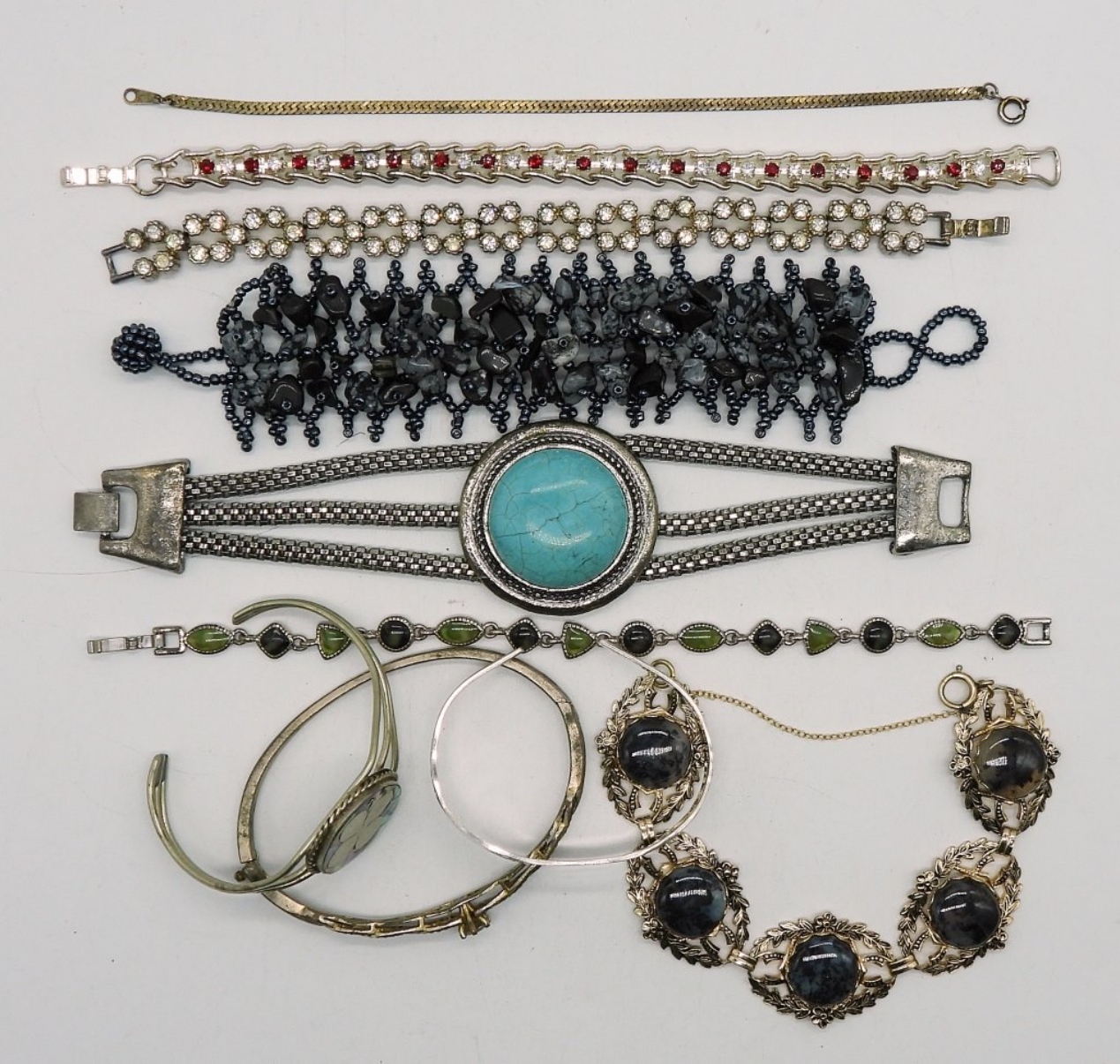 TEN FASHION SILVER AND GOLD TONE BRACELETS. 7″-8″