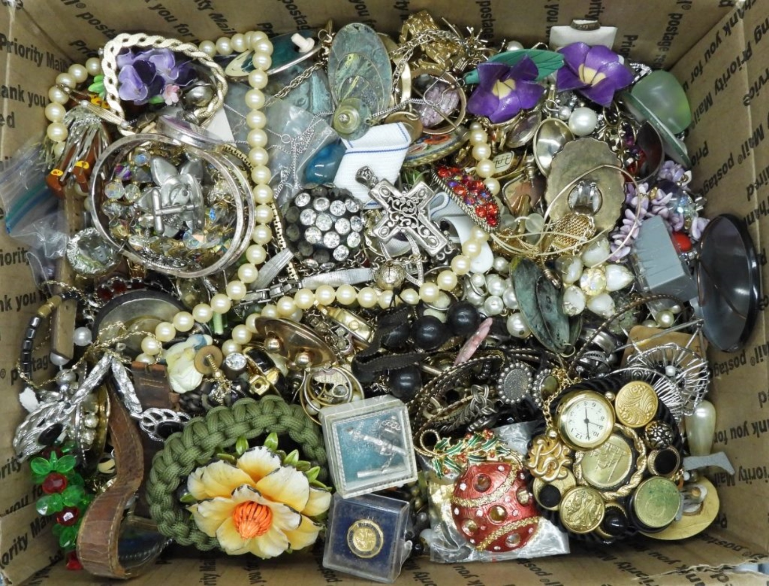 MAY BE BROKEN, TARNISHED, IN NEED OF REPAIR, ETC. SOME WEARABLE, GREAT FOR CRAFTING! MEDIUM/LARGE FLAT RATE BOX