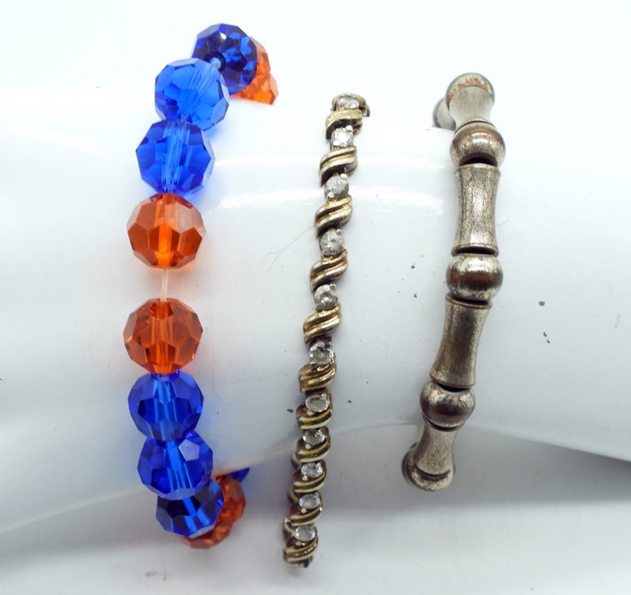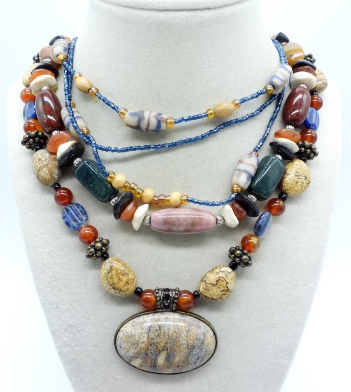3 NECKLACES WITH BEADS AND NATURAL GEMSTONES, 19, 22, 23″. 3 BRACELETS, 7.5 & 8″.