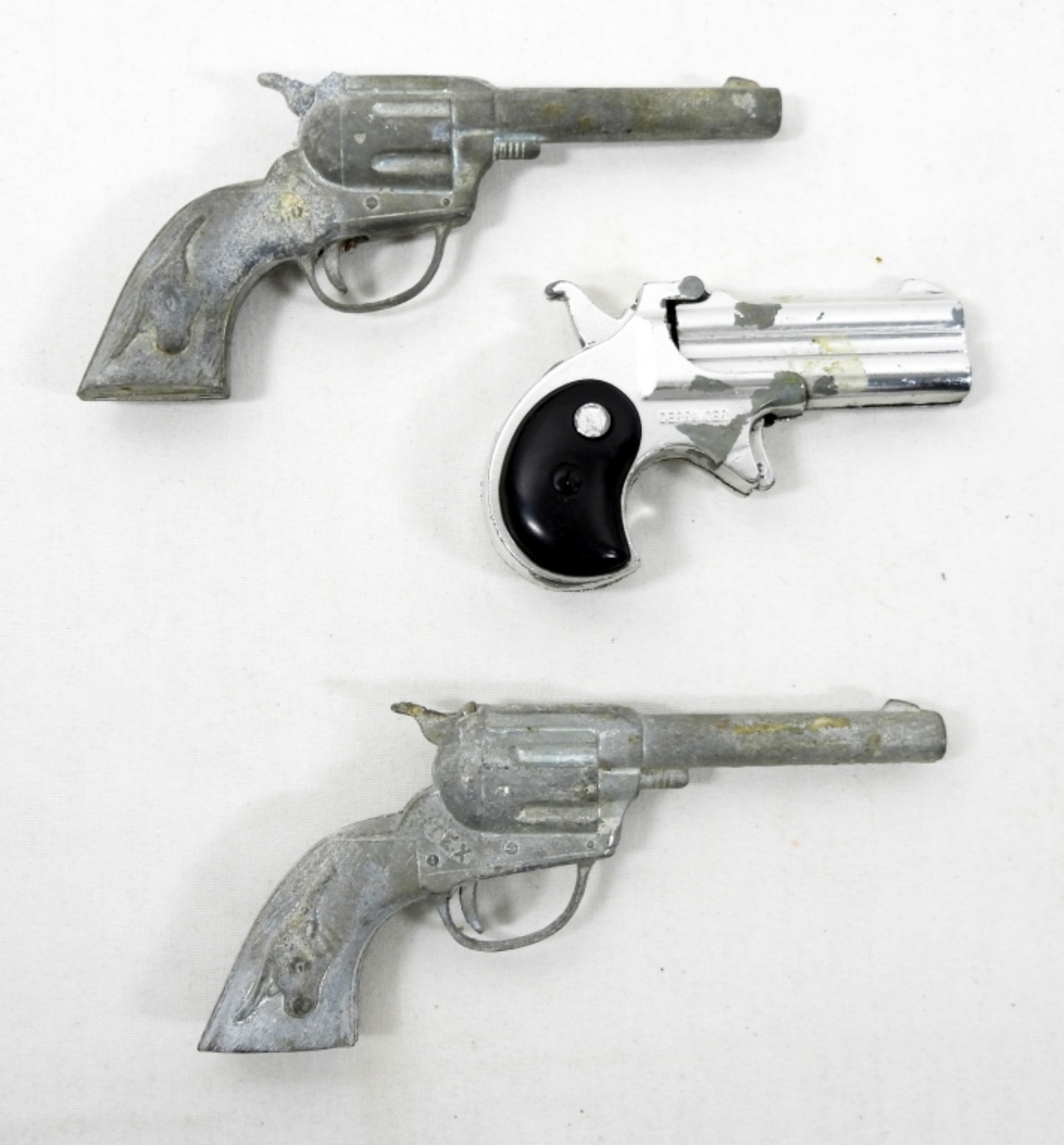 (3) VINTAGE CAP GUNS (2) HUBLEY TEX CAP GUNS &1 DERRINGER CAP GUN