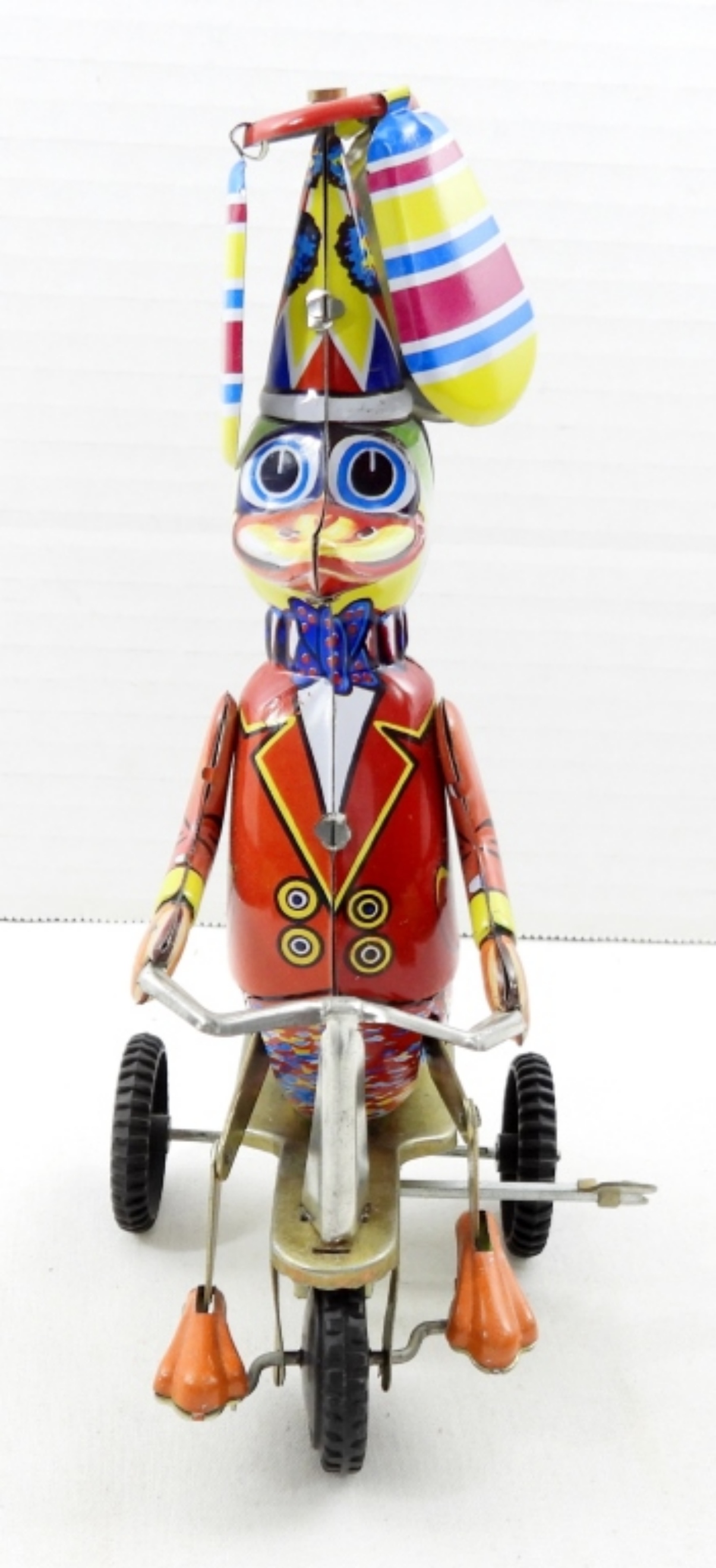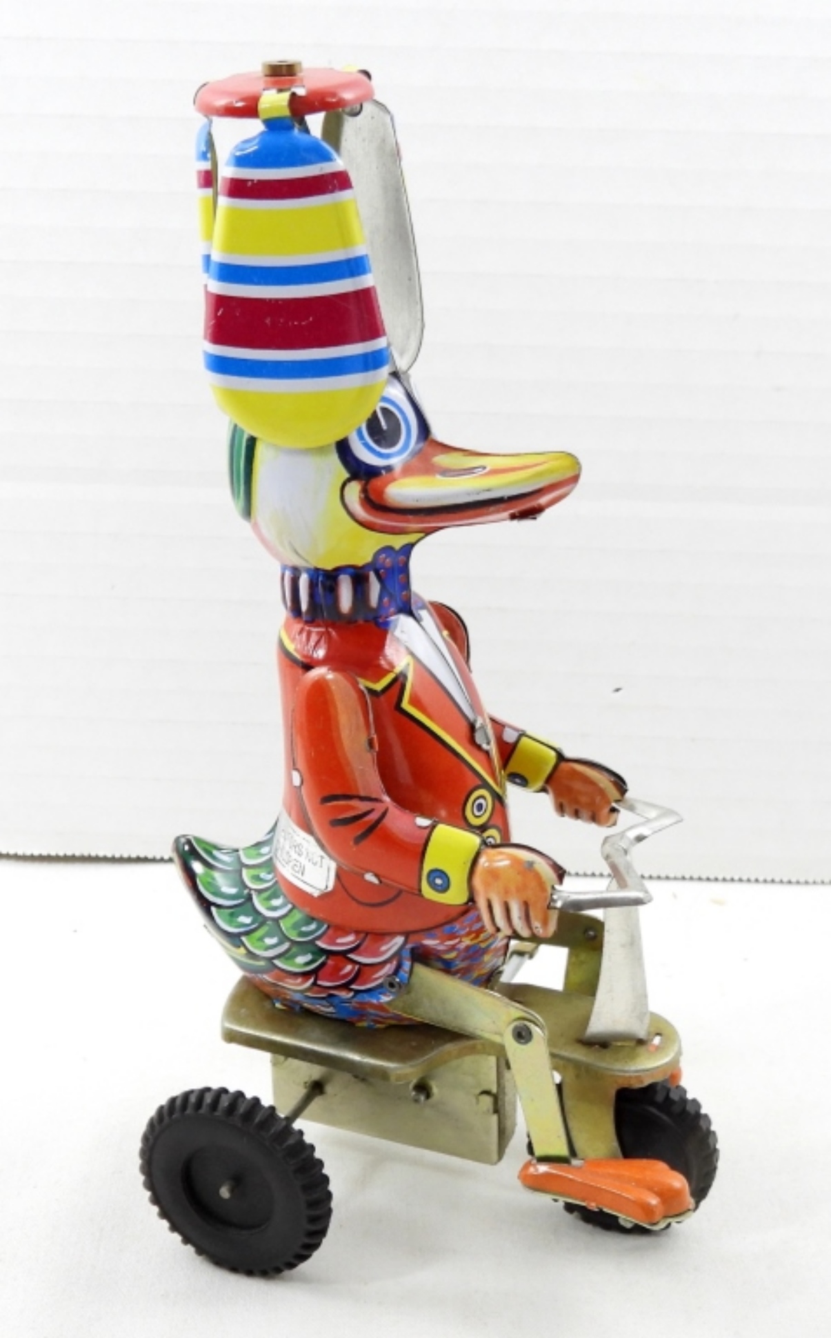VINTAGE SCHYLLING DUCK ON BIKE WIND-UP