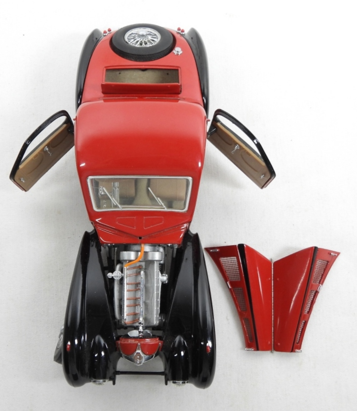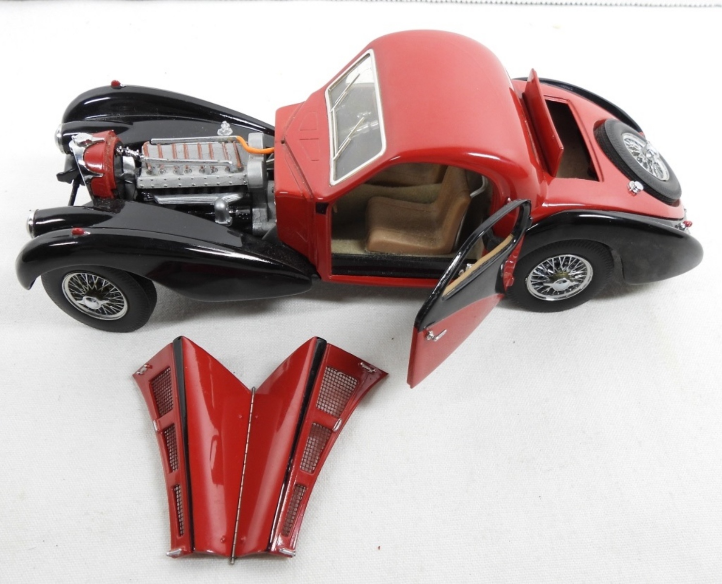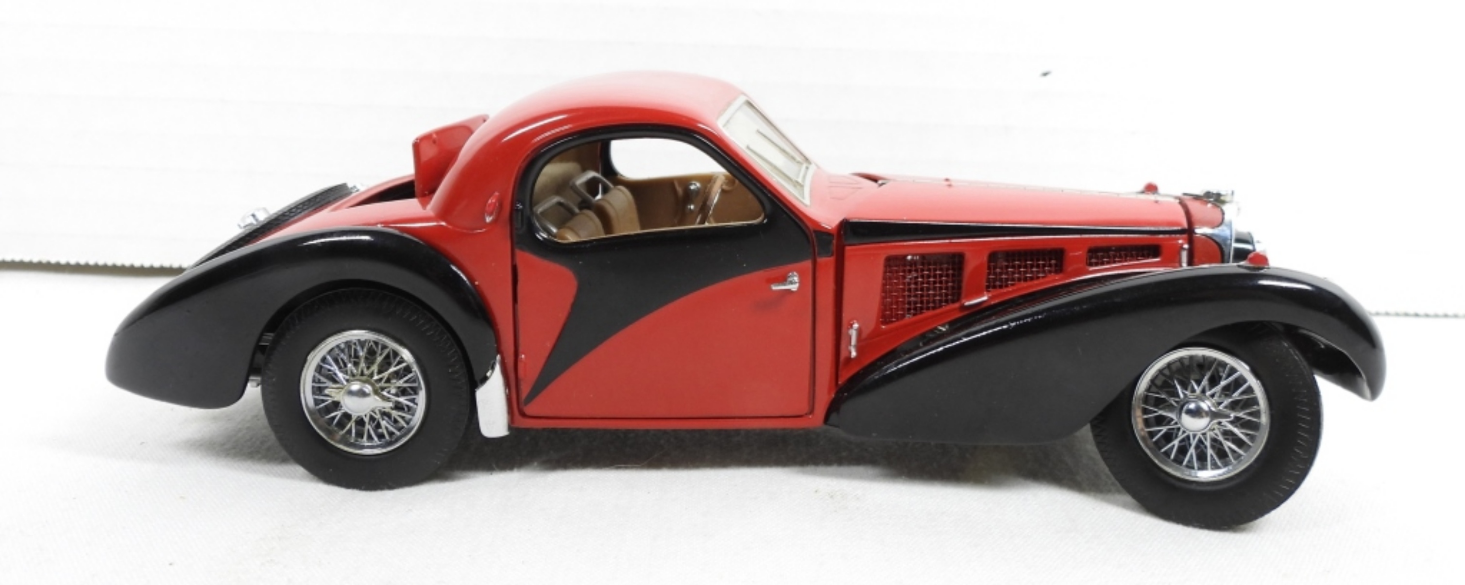 FRANKLIN MINT PRECISION MODELS RED AND BLACK 1936 BUGATTI TYPE 57SC, 1:24 SCALE DIECAST ( NEEDS MINOR REPAIR)