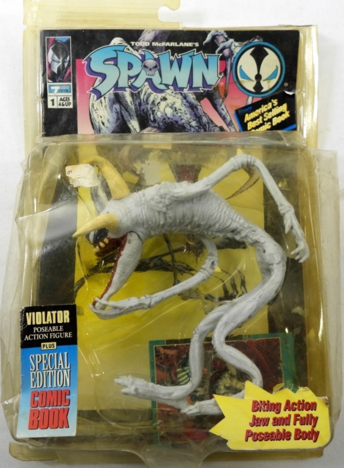 TODD MC FARLANES SPAWN” VIOLATOR ” ACTION FIGURE PLUS SPECIAL EDITION COMIC BOOK !! ( PACKAGING SHOWS WEAR)
