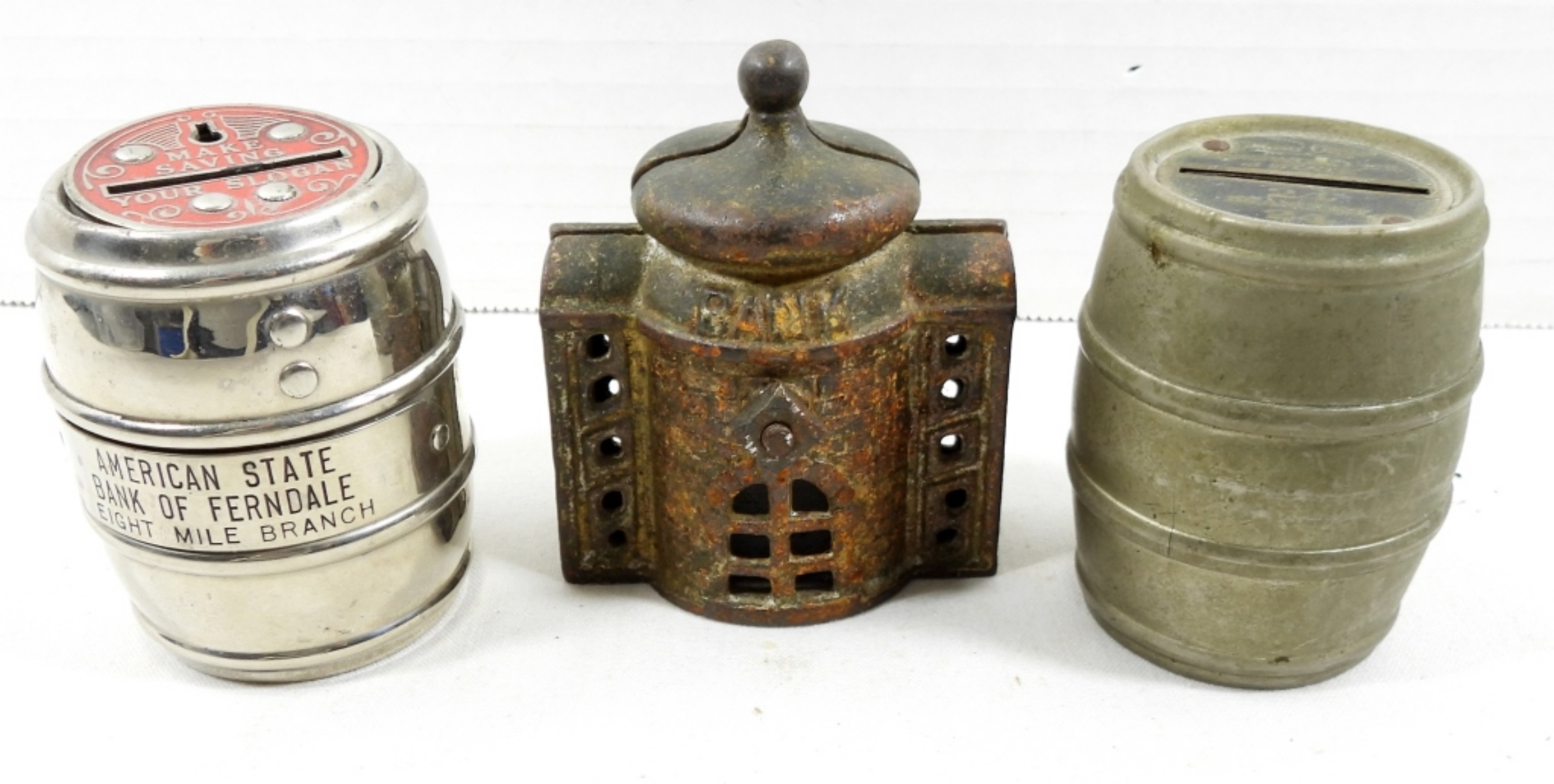 (2) BANK BARRELS – GIRSWOLD ST & BANK of FERNDALE