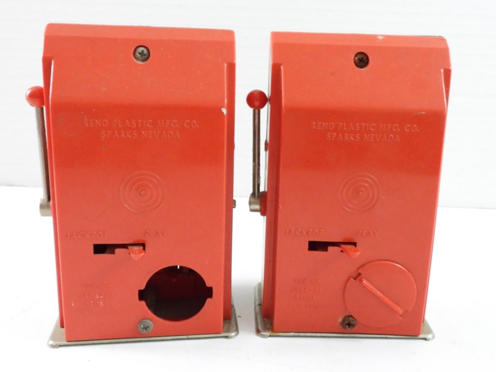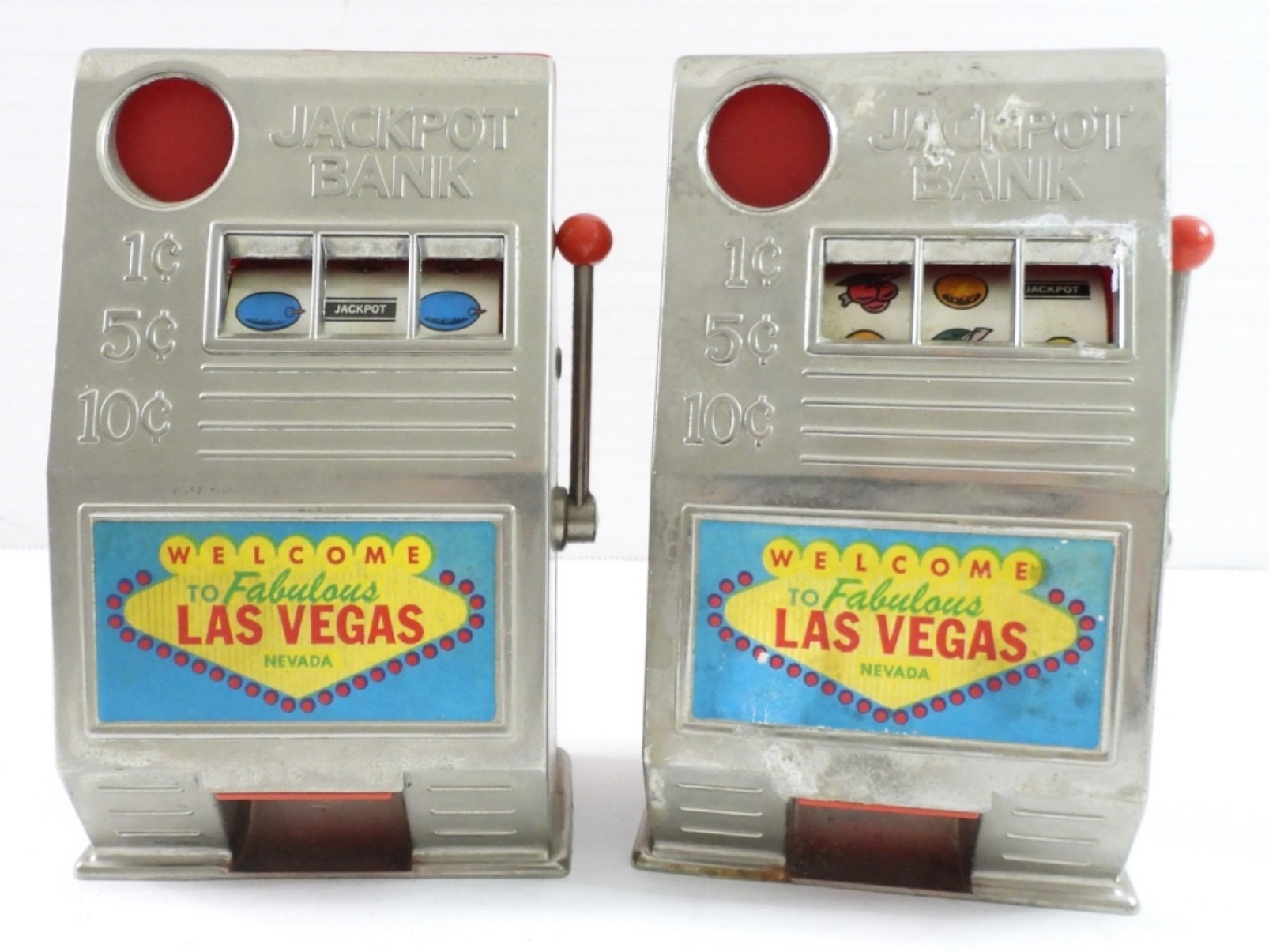 Mini Las Vegas Slot Machine Banks – (1) missing Back Coin Cover – Handle pulls