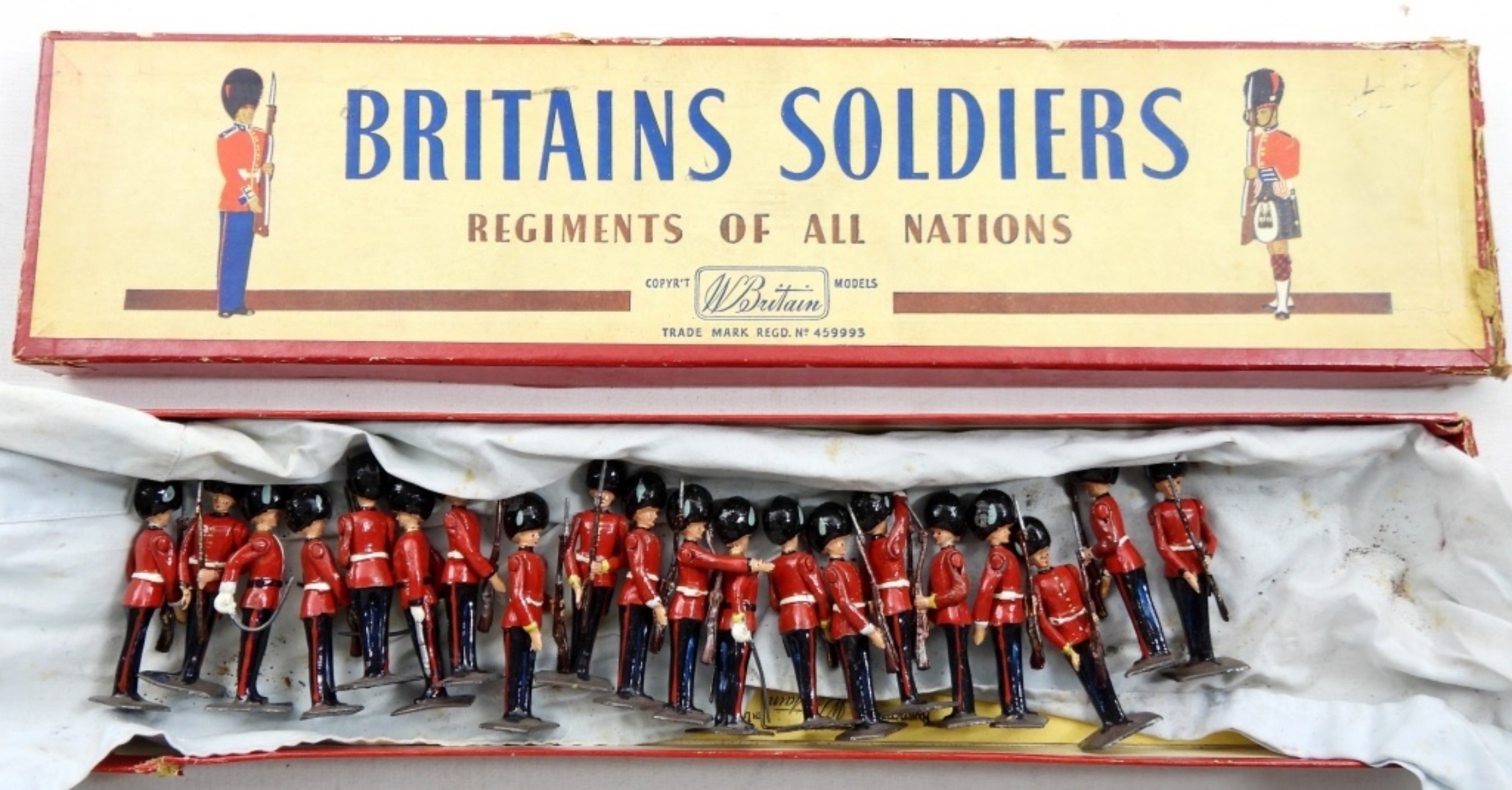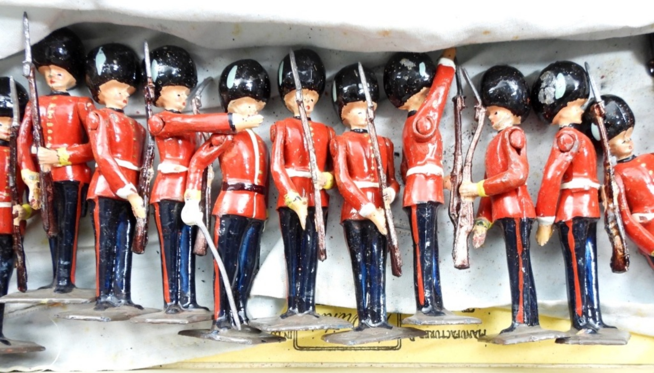 W.BRITAIN BOX SET OF 20 IRISH GUARDS (PRESENT ARMS) METAL SOLDIERS IN BOX