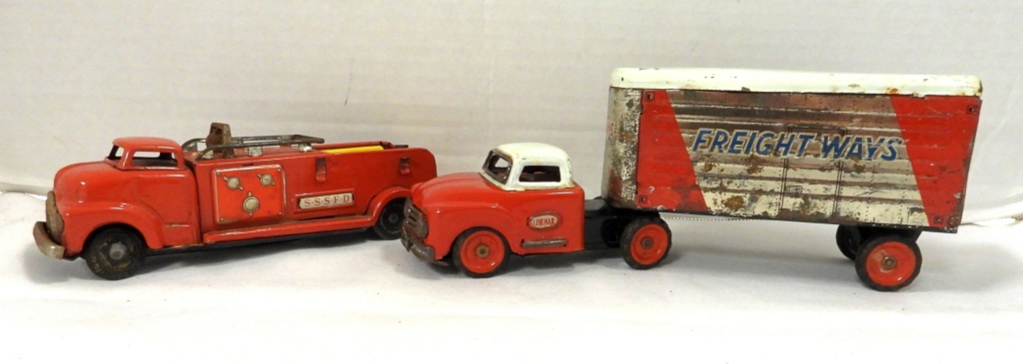 ENGINE – LINEMAR TOYS 9 1/2″ TRUCK & 7 1/2″ FIRETRUCK MADE in JAPAN