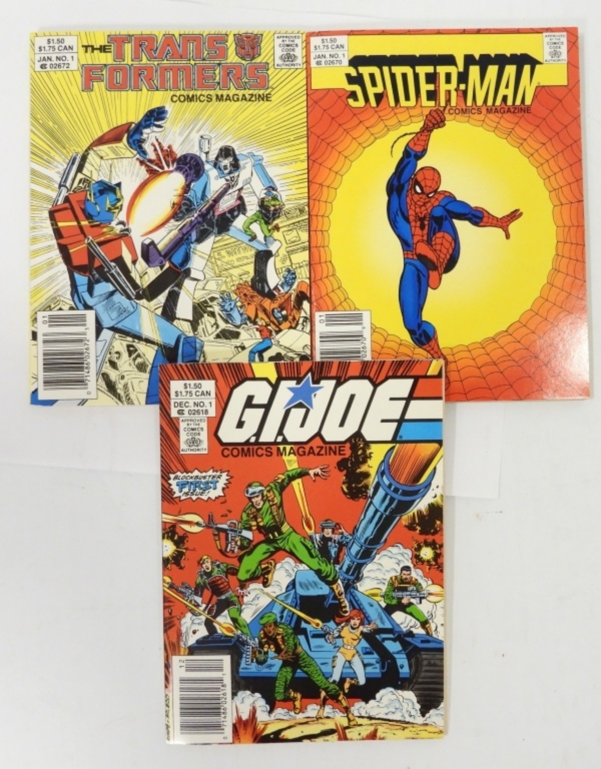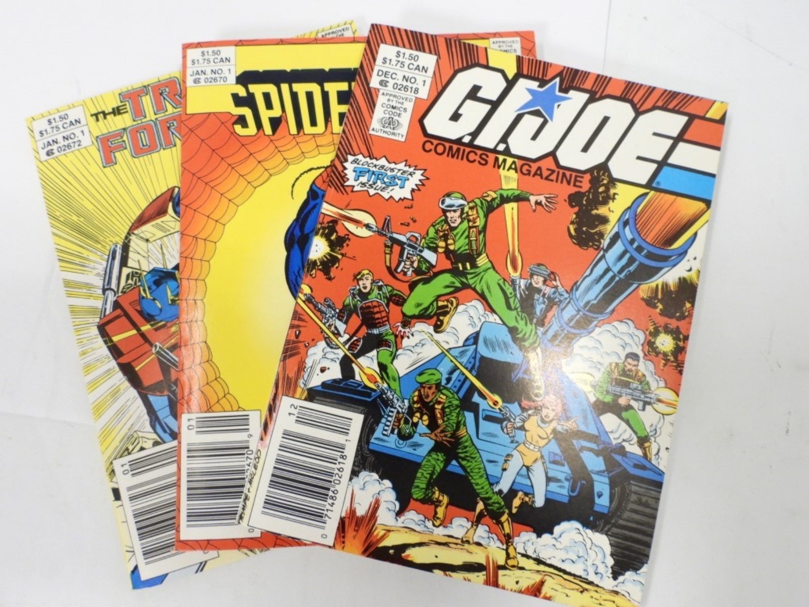 (3) VINTAGE 1980’S COMIC MAGAZINE BOOK LOT, SPIDER-MAN, GI JOE & TRANS FORMERS