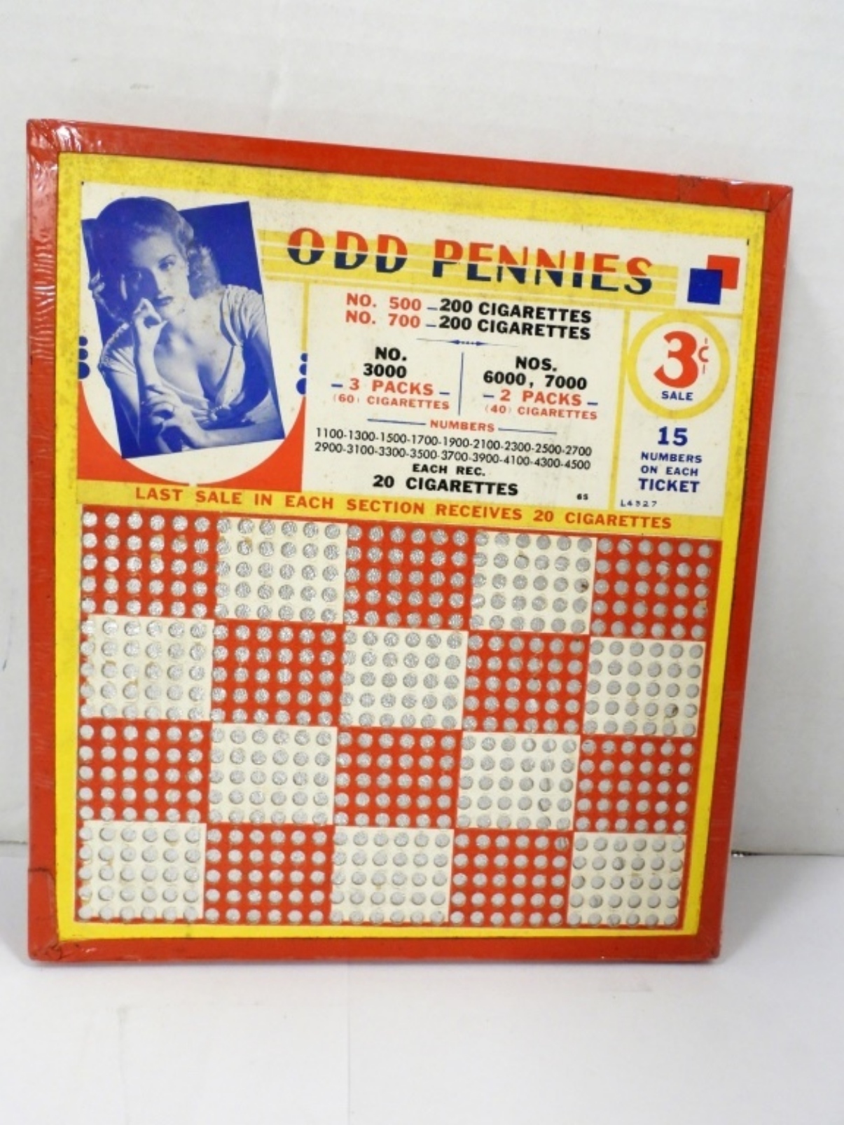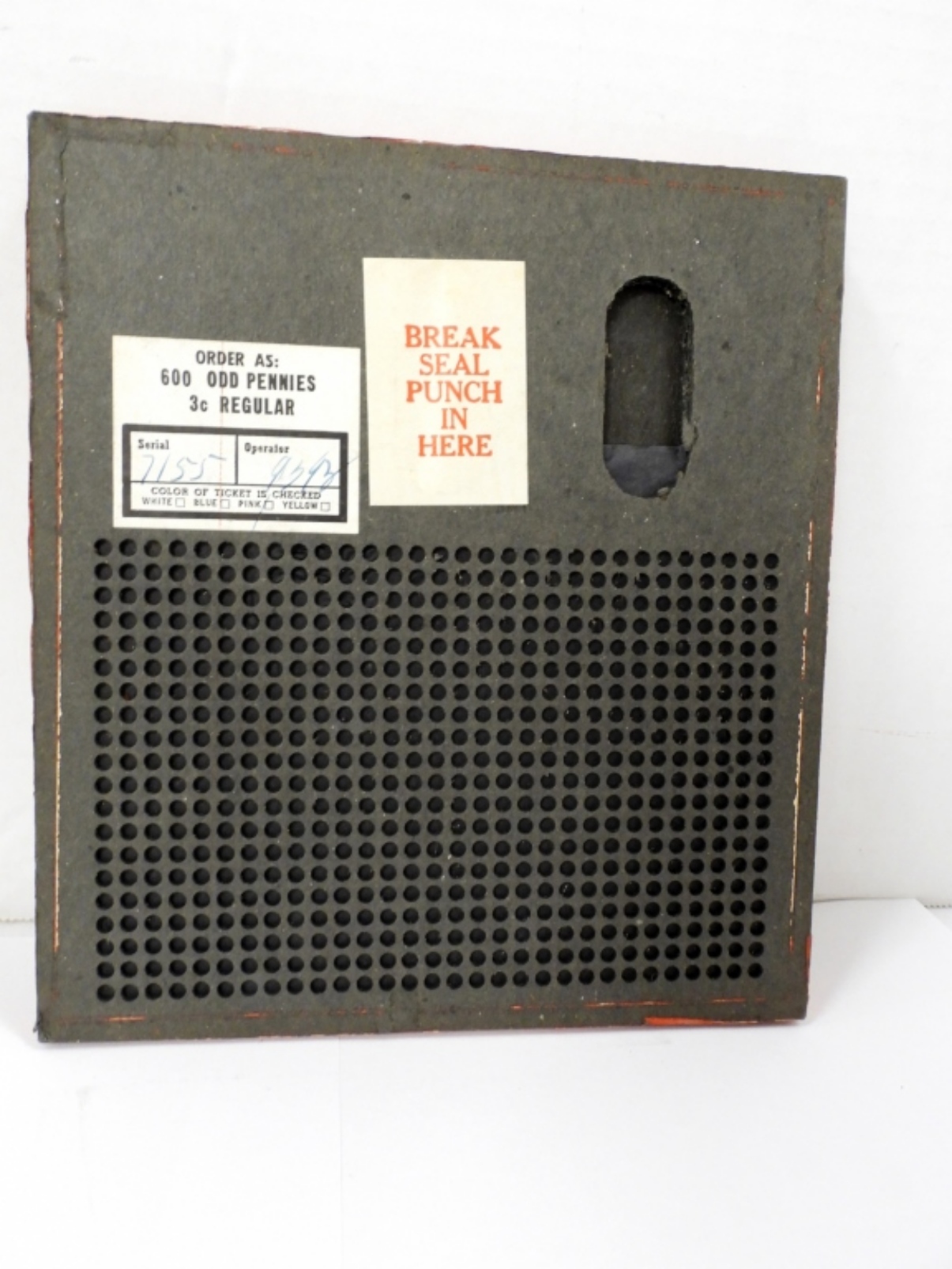 VINTAGE 3c ODD PENNIES CIGERETTE PUNCHBOARD UNUSED WITH SEALED PUNCH KEY( 8.5″X7.5″) SERIAL 7155