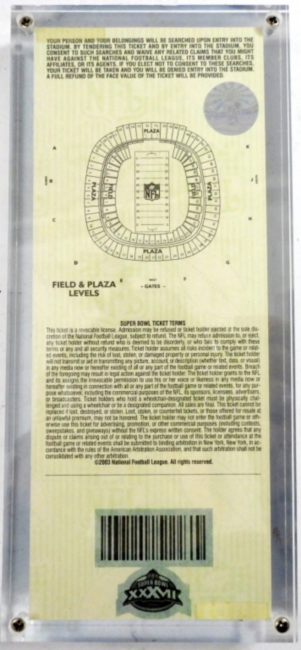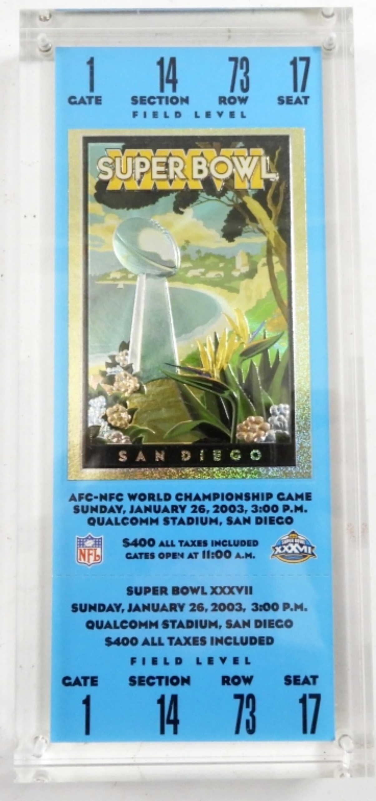 QUALCOMM STADIUM, JAN 26TH, MINT ACRYLIC HOLDER