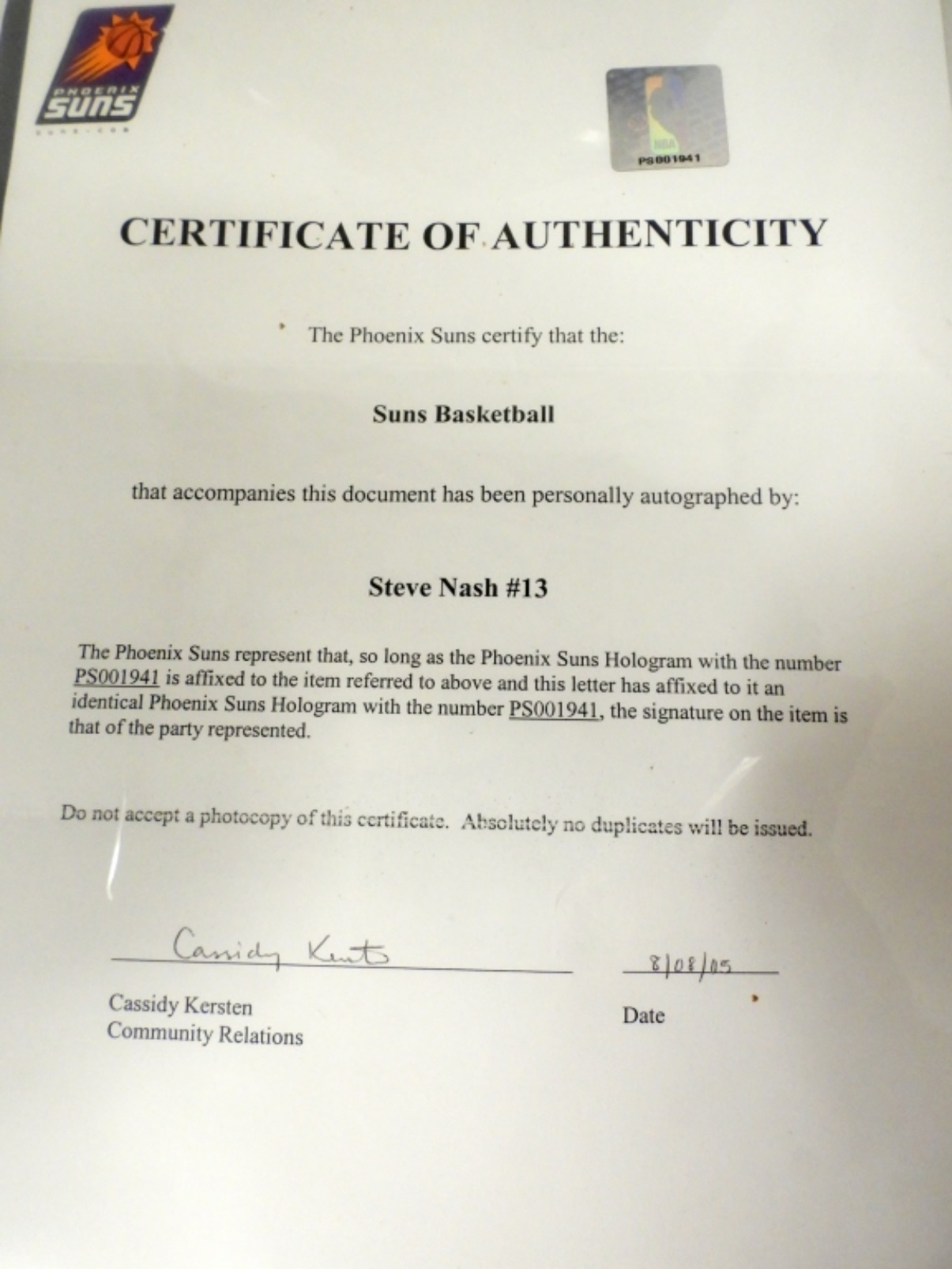 PHOENIX SUNS STEVE NASH SIGNED BALL w /COA