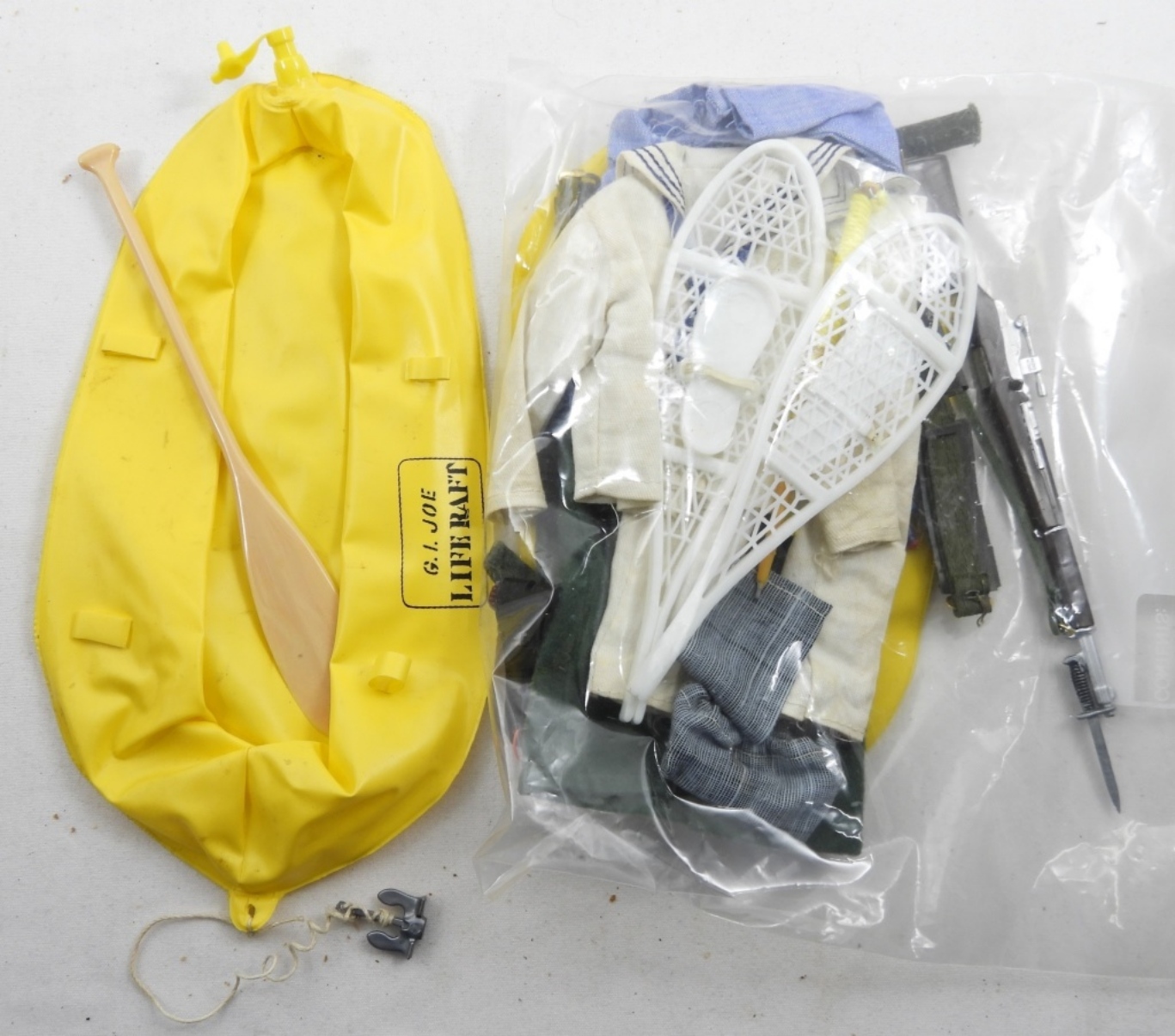 (5) VINTAGE ASSORTED GI JOE UNIFORMS & ACCESSORIES, MP OUTFIT, SCUBA ACCESSORIES AND MORE
