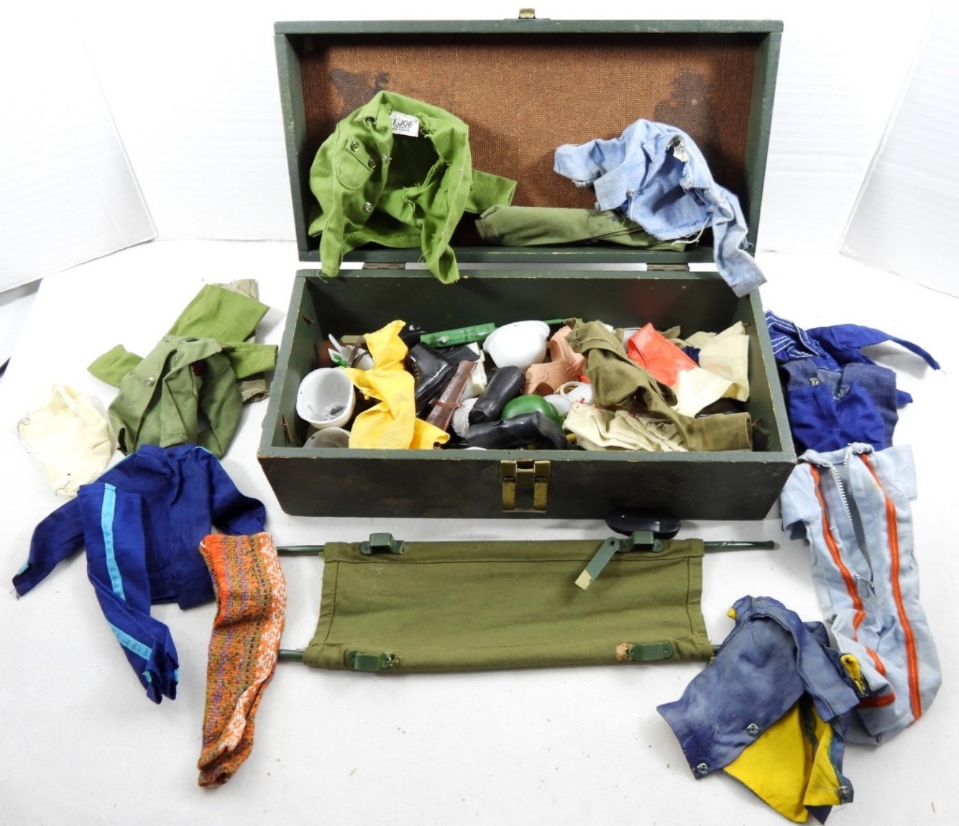 VINTAGE GI JOE FOOT LOCKER & ACCESSORIES, CLOTHES , BOOTS ,HATS AND MORE