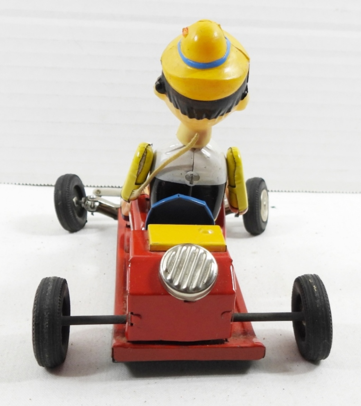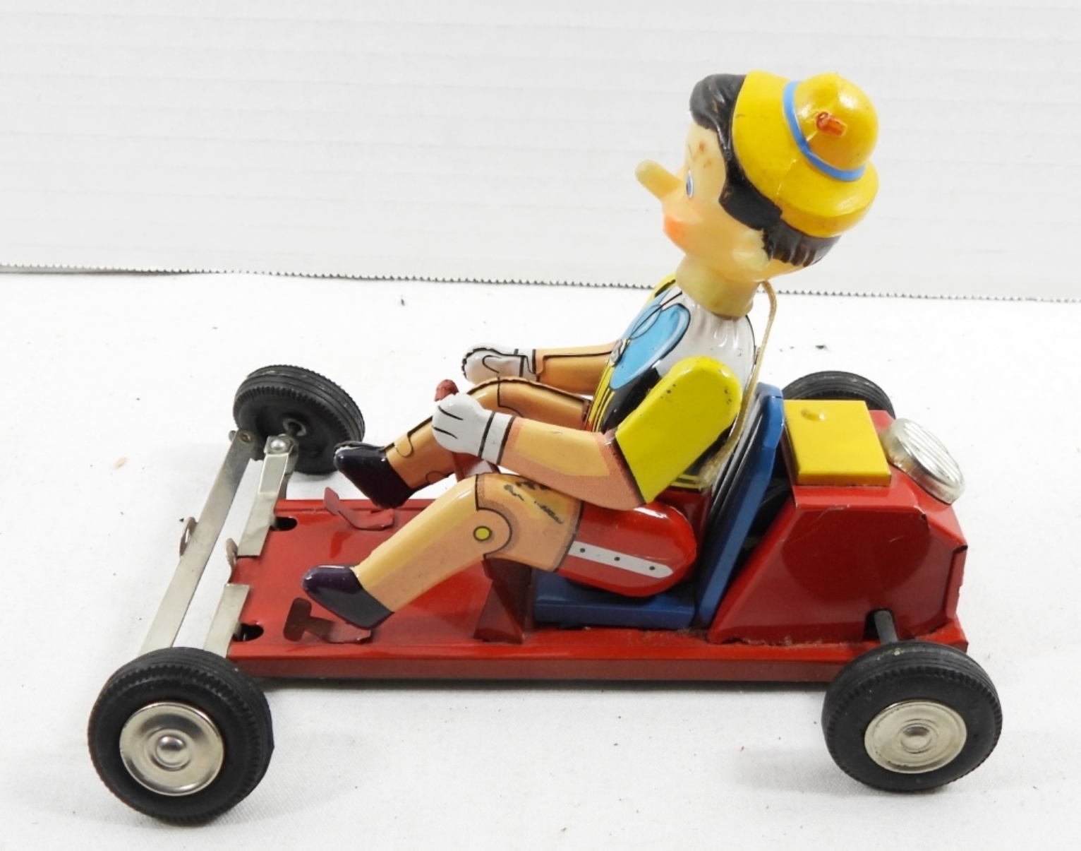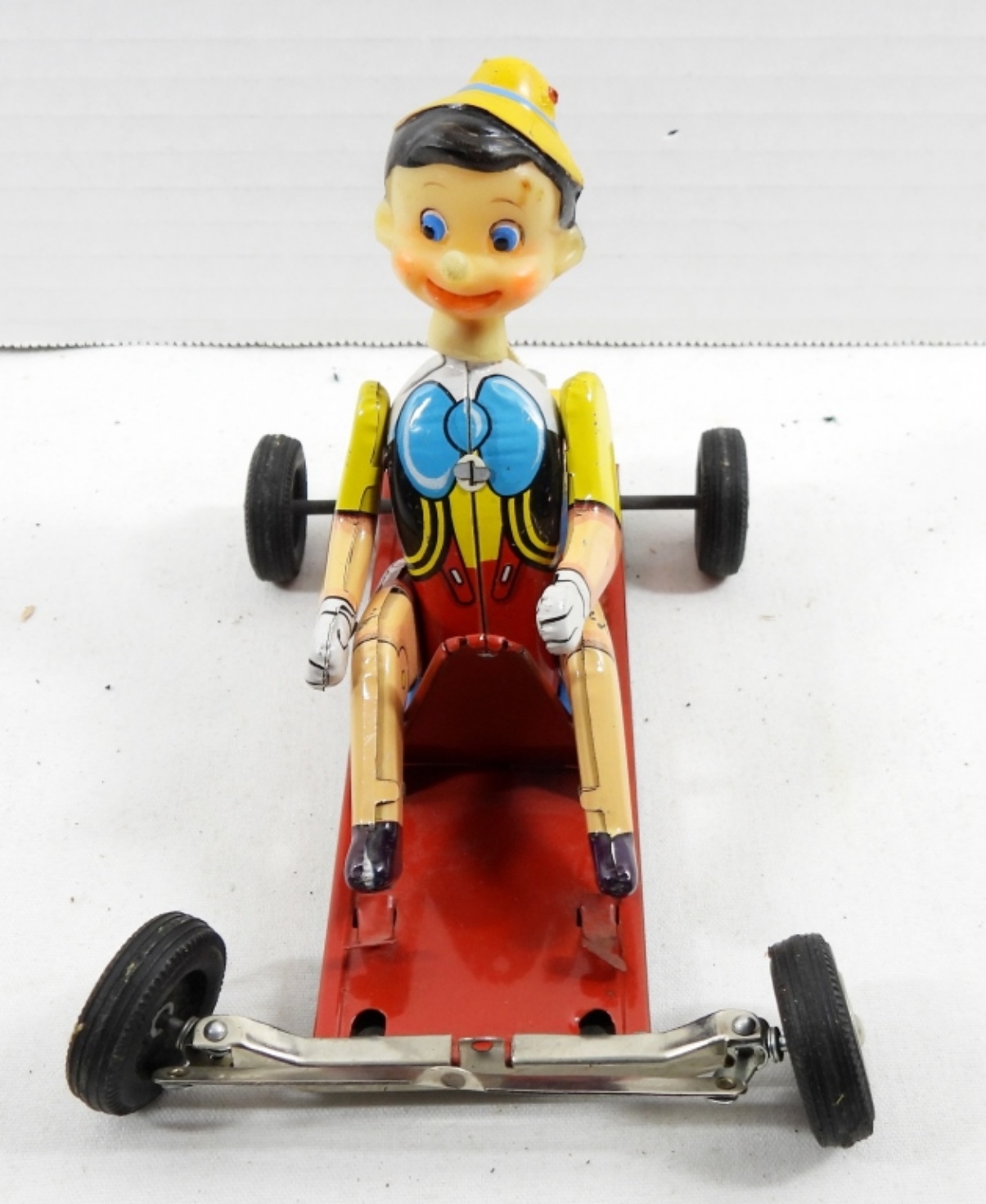LINE MAR TOYS , TIN PINOCCHIO IN CART. WALT DISNEY PRODUCTION.( MISSING STEERING WHEEL