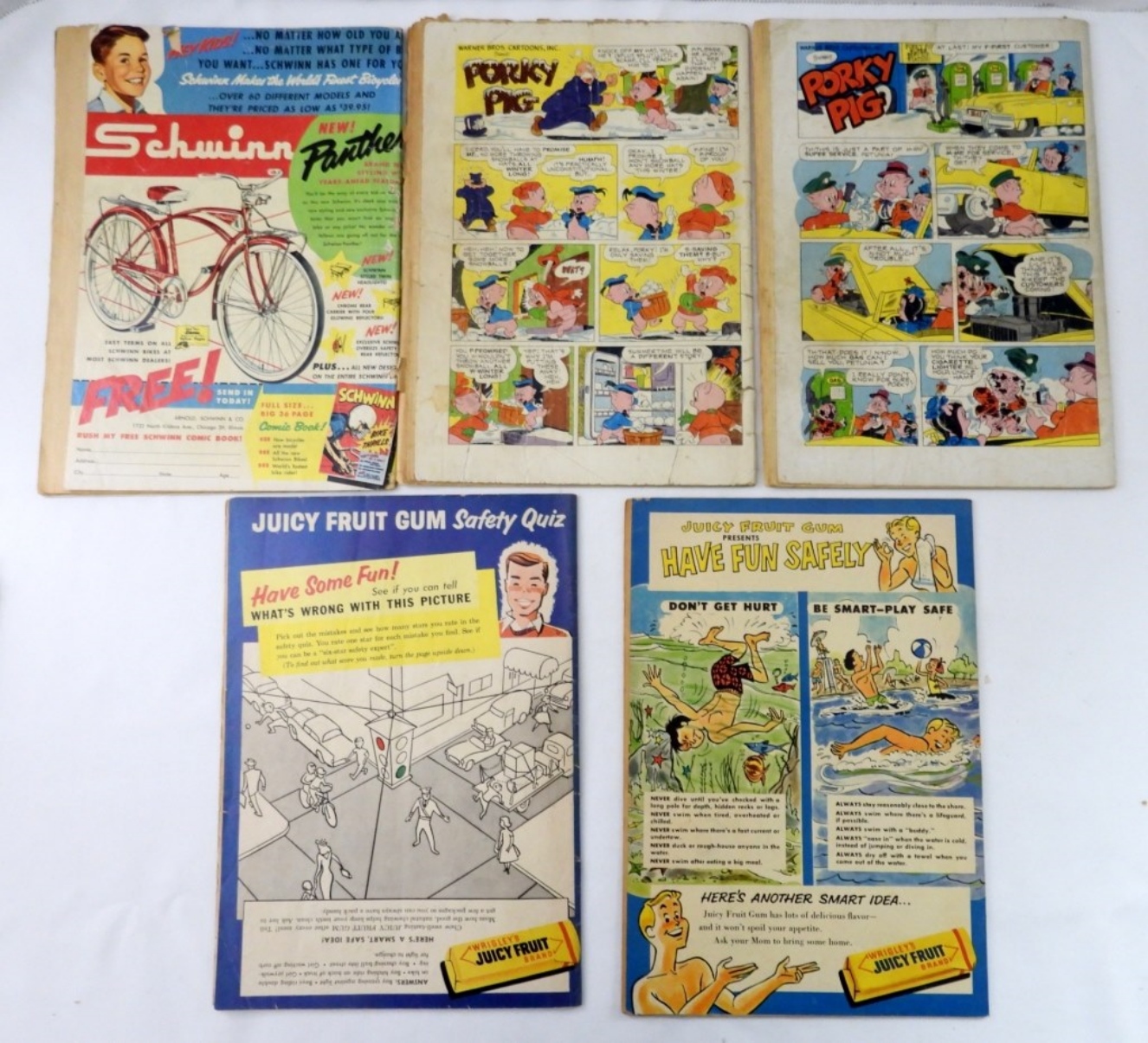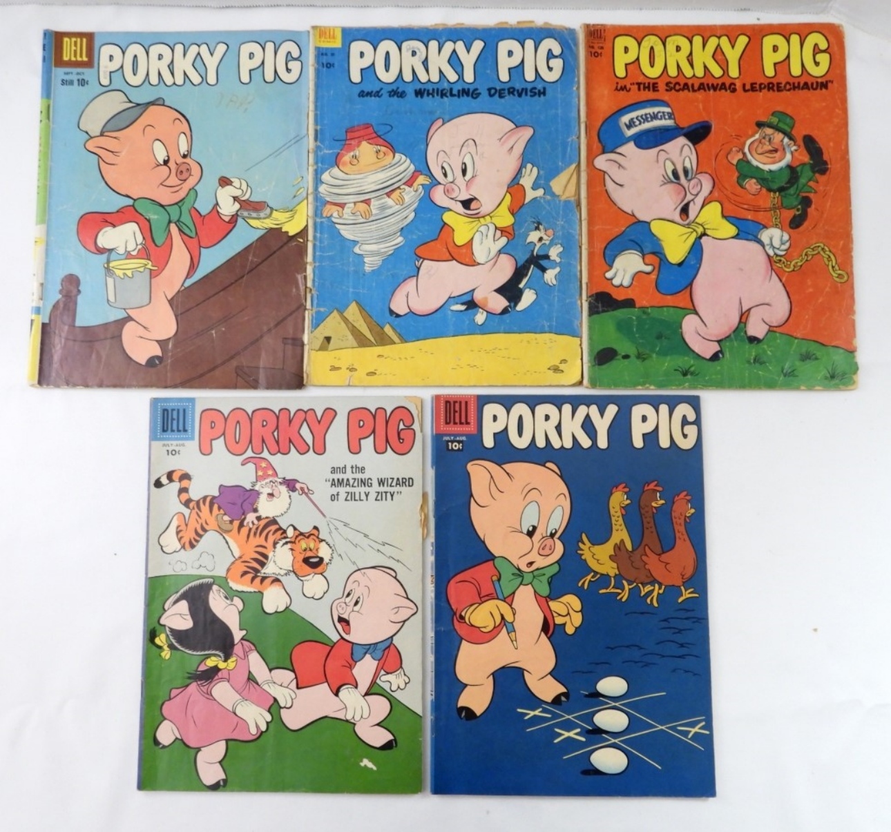(5)1950S DELL PORKY PIG COMICS, ISSUES 26, 53,59, 66,& 426; ISSUE 26 & 426 WORN/USED, WRITING ON SOME COVERS, 53 & 59 GOOD CONDITION