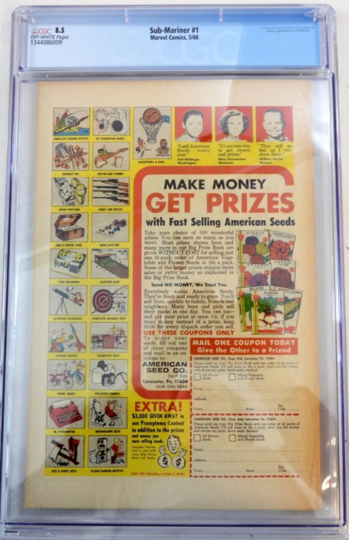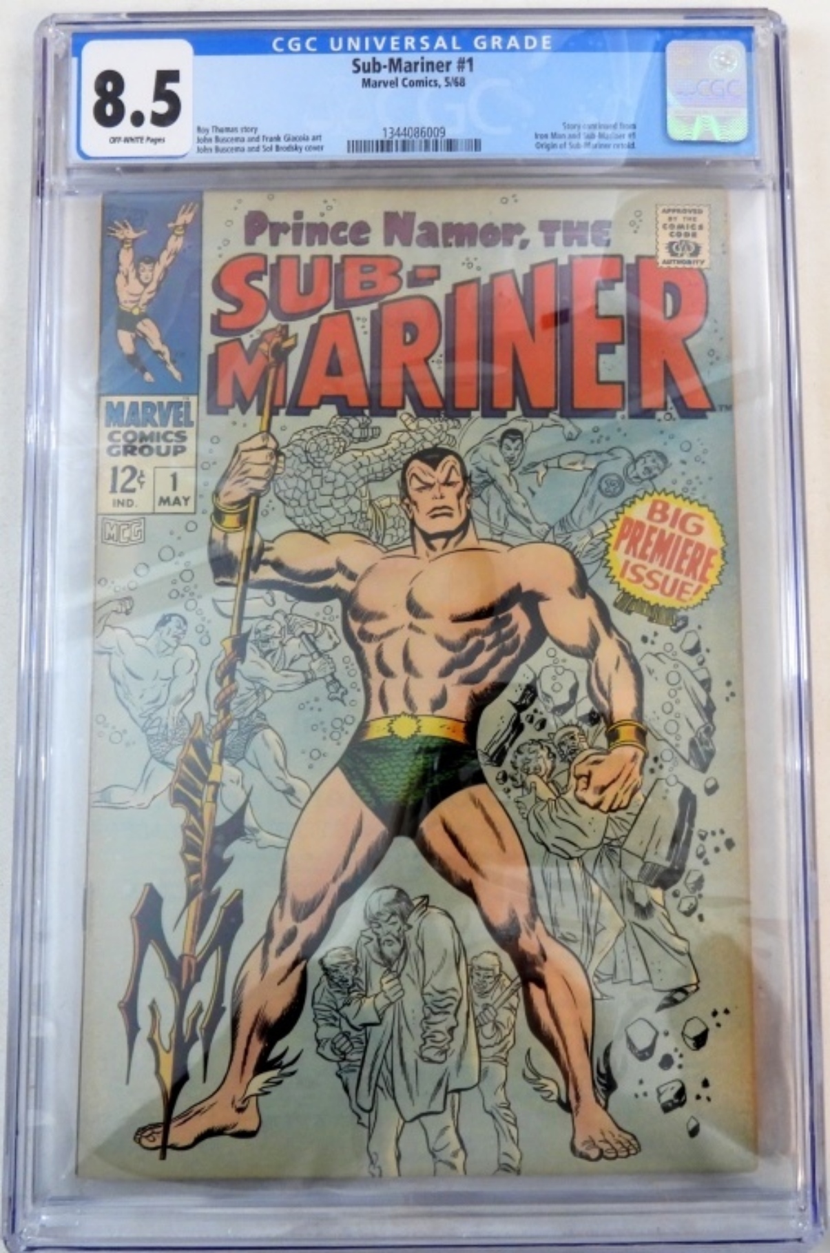 1968 MARVEL SUB-MARINER #1 CGC 8.5 ORIGIN STORY, BIG PREMIER ISSUE. ( SMALL CHIP MISSING OUT OF THE LEFT CORNER OF THE PROTECTIVE CASE) SEE PICTURES