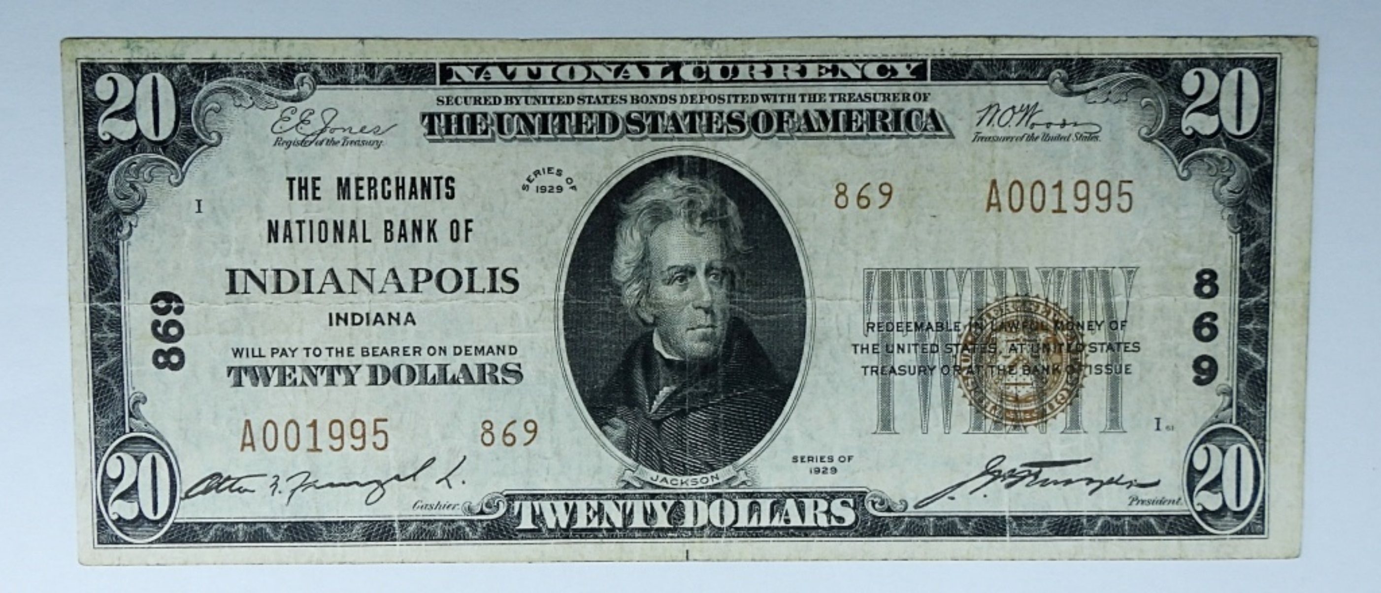 1929 $20 NATIONAL CURRENCY, INDIANAPOLIS INDIANA