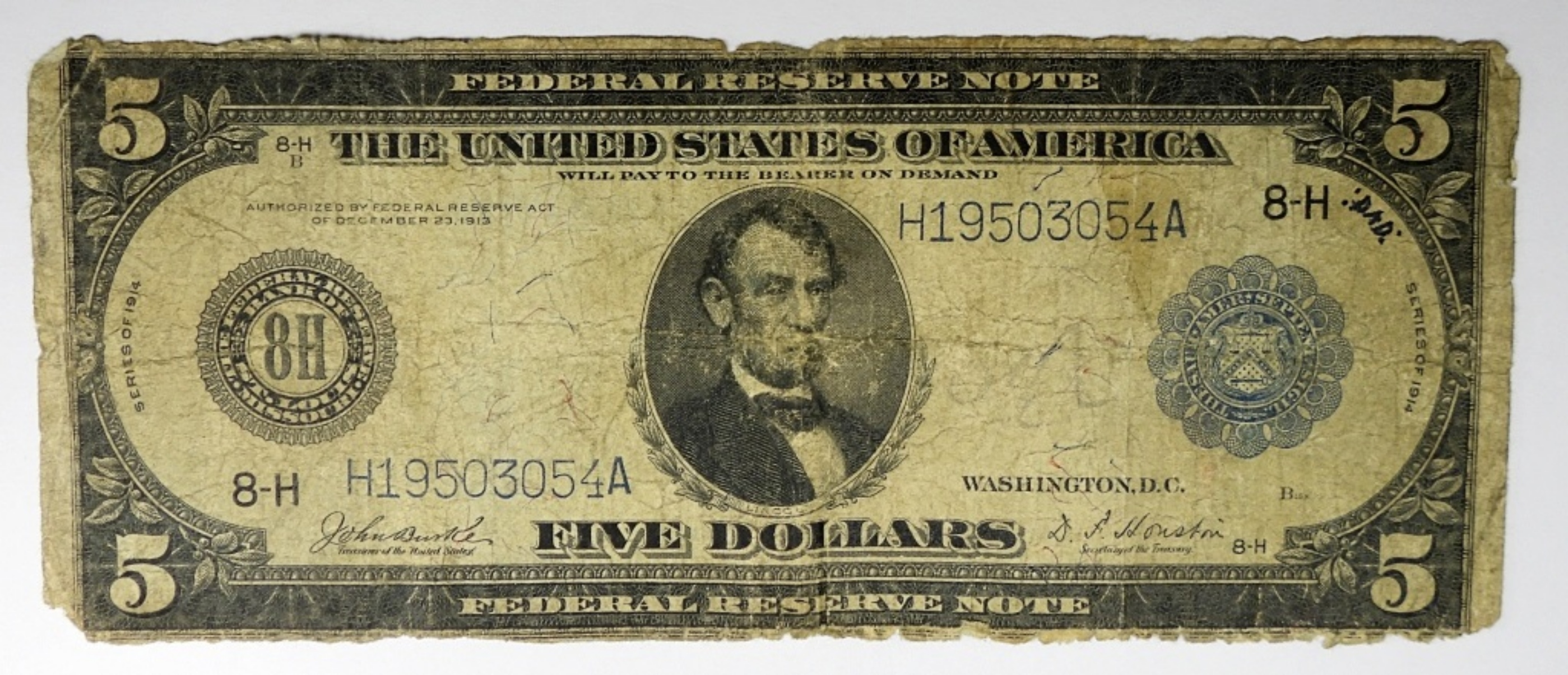 1914 $5 FEDERAL RESERVE NOTE, ST LOUIS
