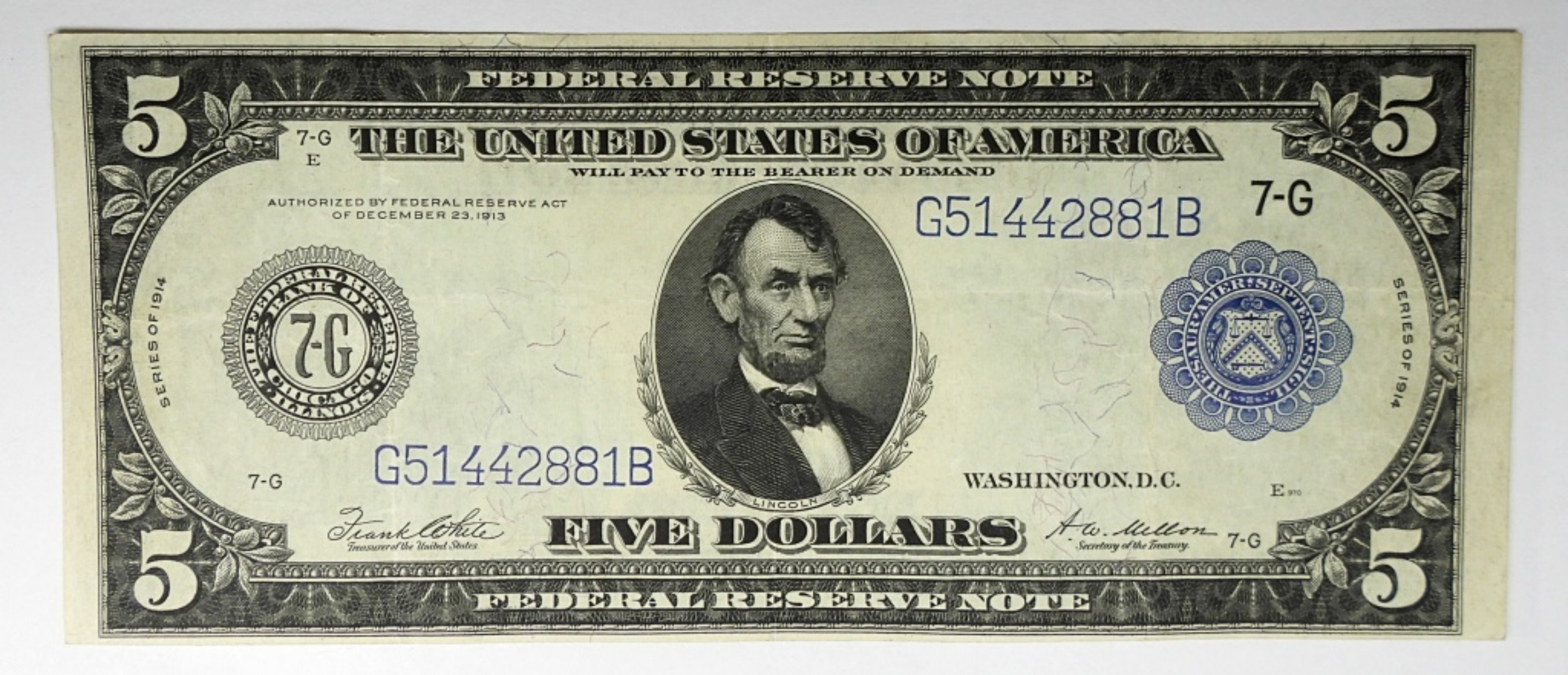 1914 $5 FEDERAL RESERVE NOTE, CHICAGO
