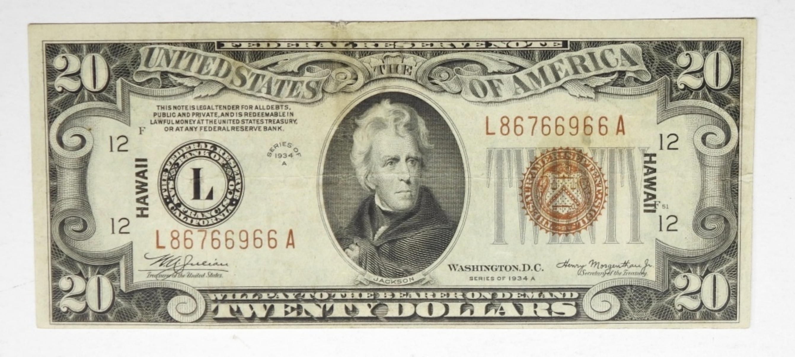 1934 A #20 FEDERAL RESERVE NOTE HAWAII