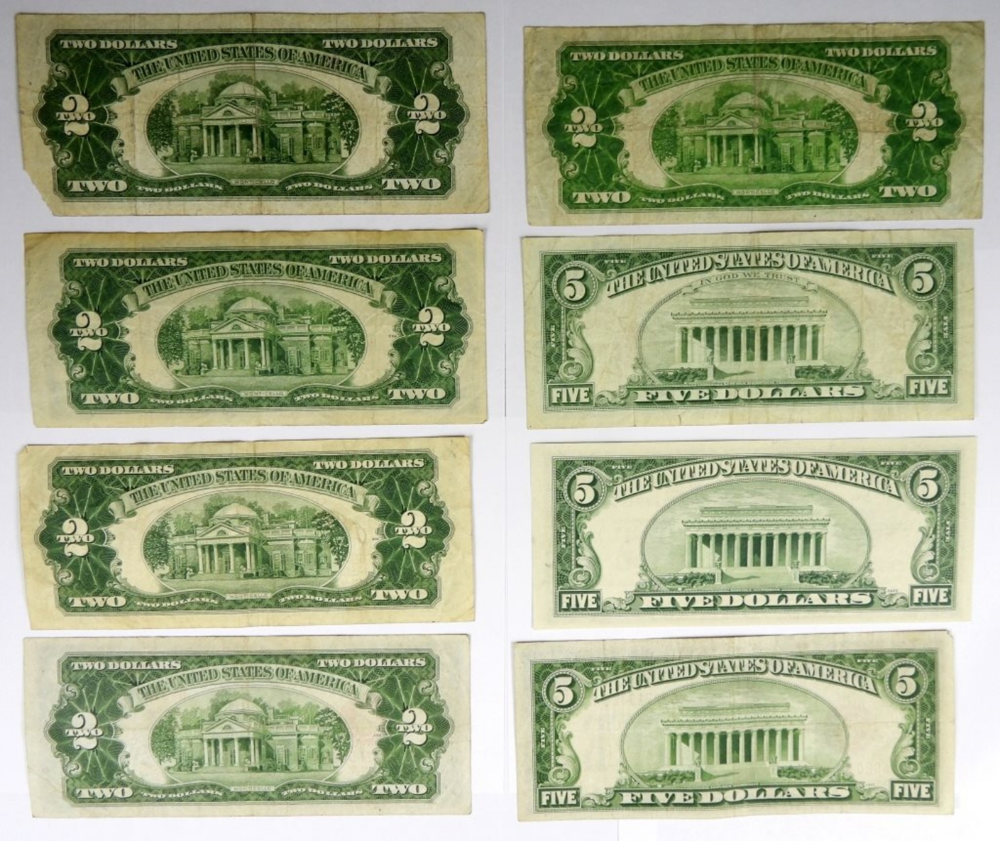 (3) $5 RED SEAL, (5) $2 RED SEAL ( 2 STAR NOTES )