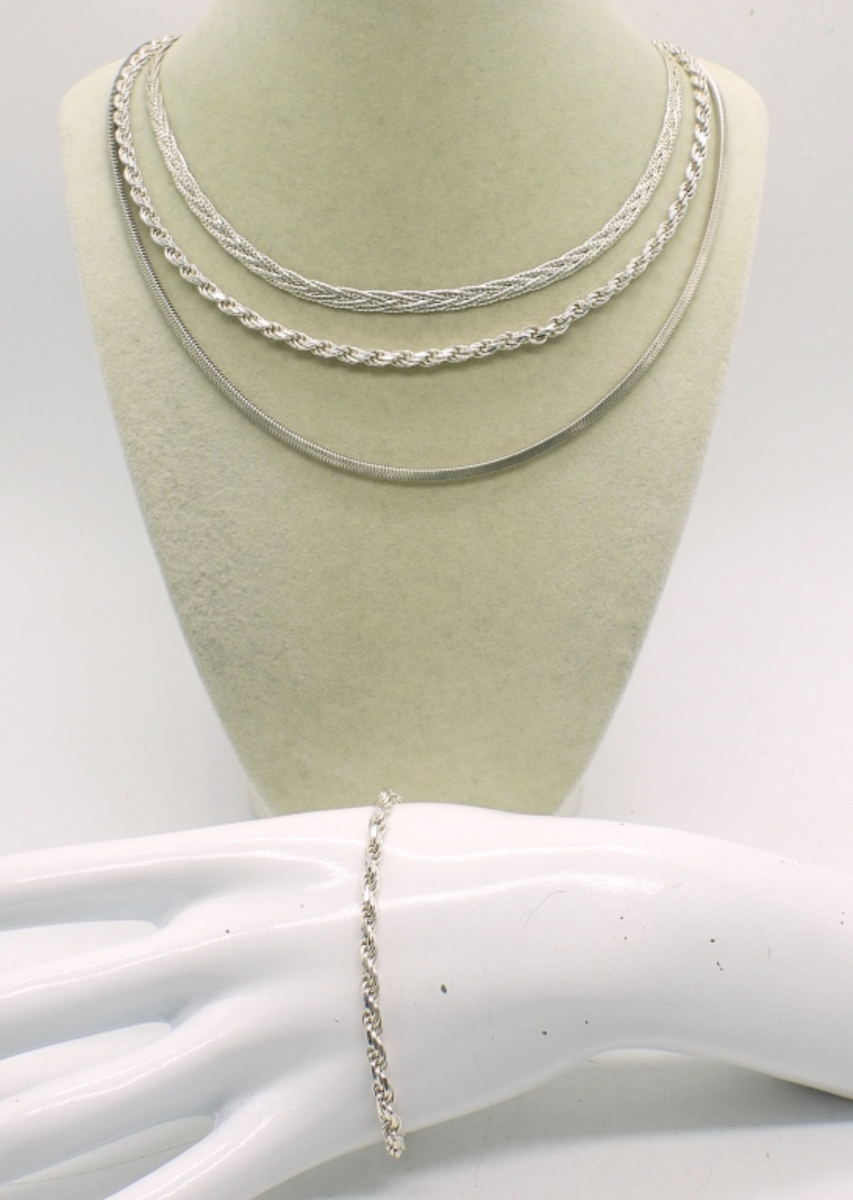 THREE STERLING SILVER CHAINS. 18″& 27.5″. STERLING CHAIN BRACELET 8″. 38.9 DWT