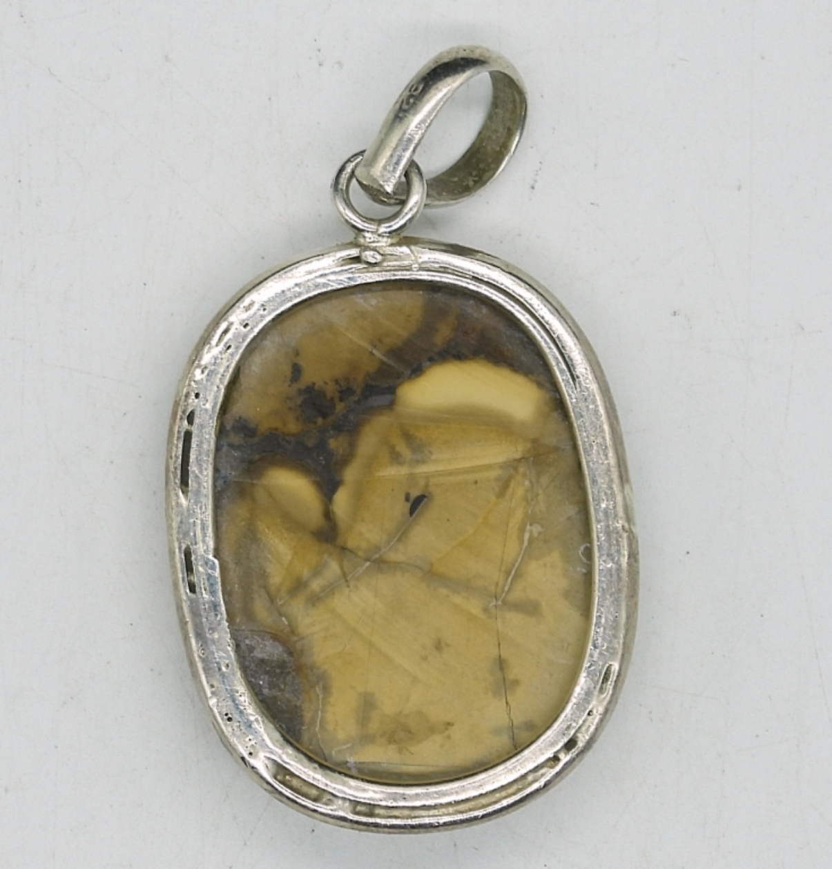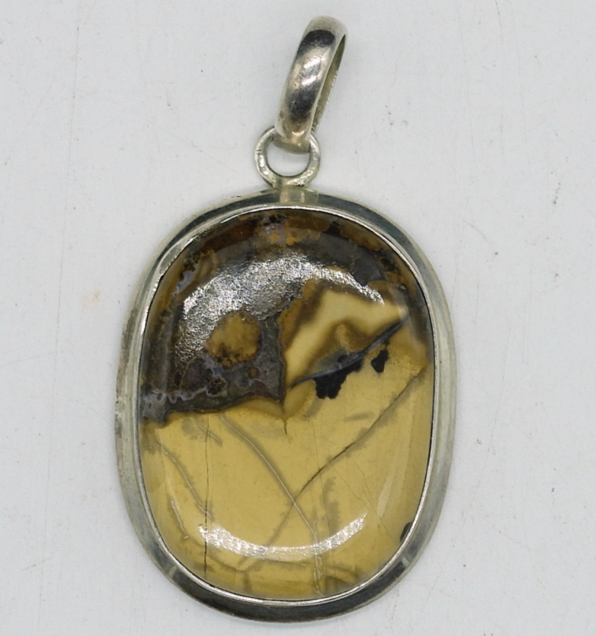 LARGE SEPTARIAN GEMSTONE PENDANT IN STERLING (AKA DRAGON STONE). PENDANT MEASURES 2″. 10 DWT