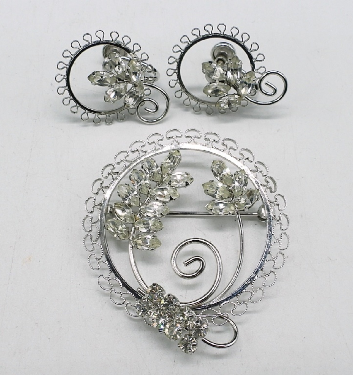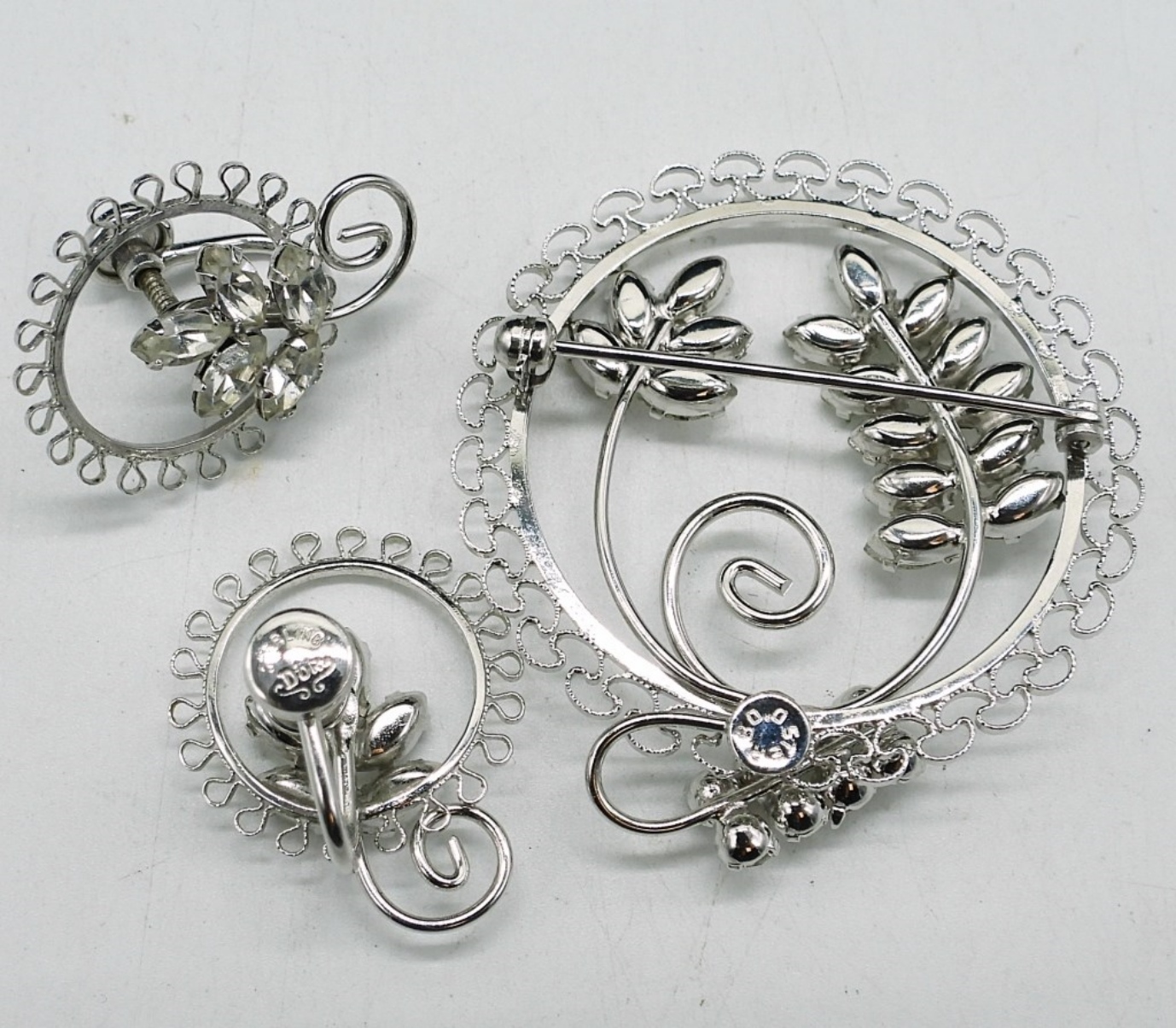 VINTAGE D’OR STERLING BROOCH AND MATCHING SCREW BACK EARRINGS. (D’OR / D.O.R.). 6.9 DWT