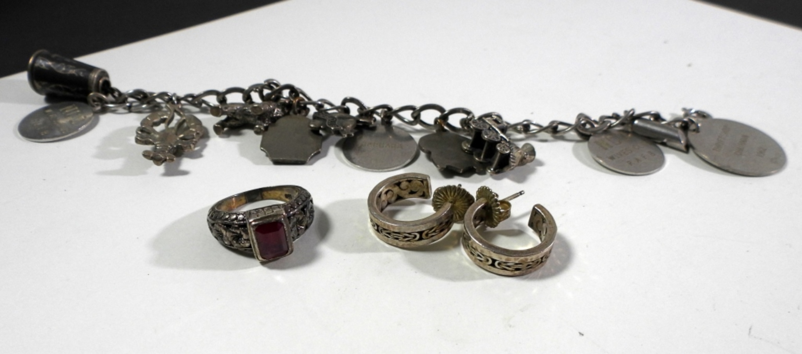 BRACELET 7in LONG RING SIZE 7 WITH RED STONE (41.6 DWT)
