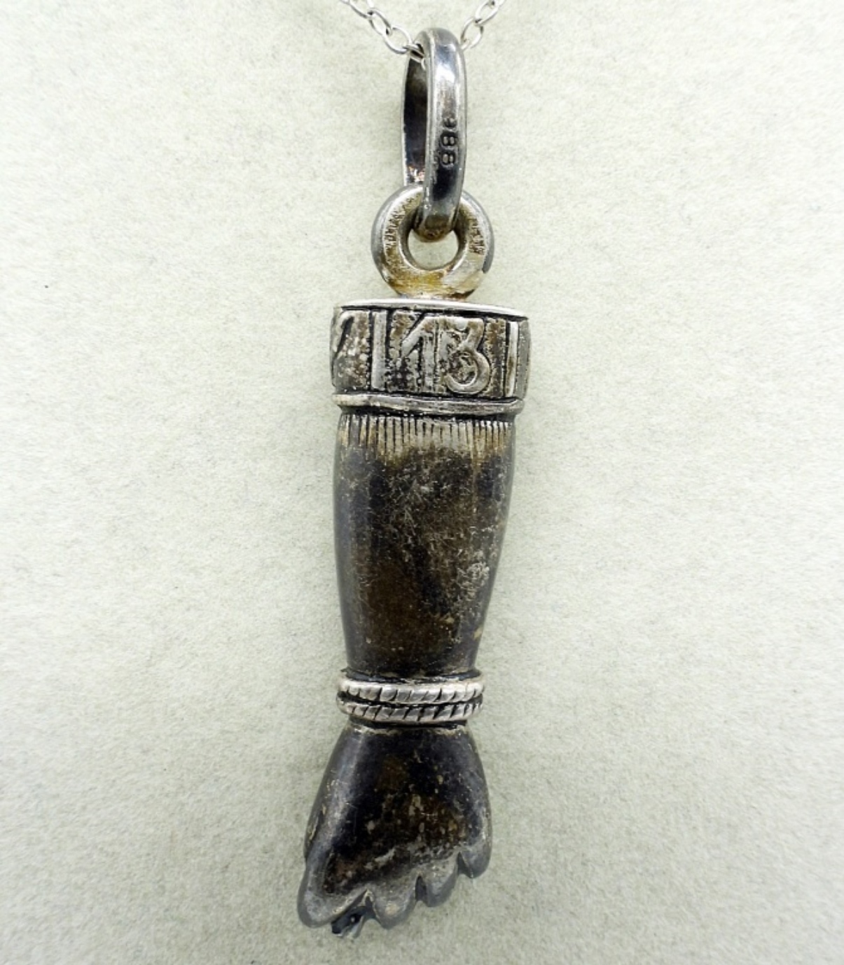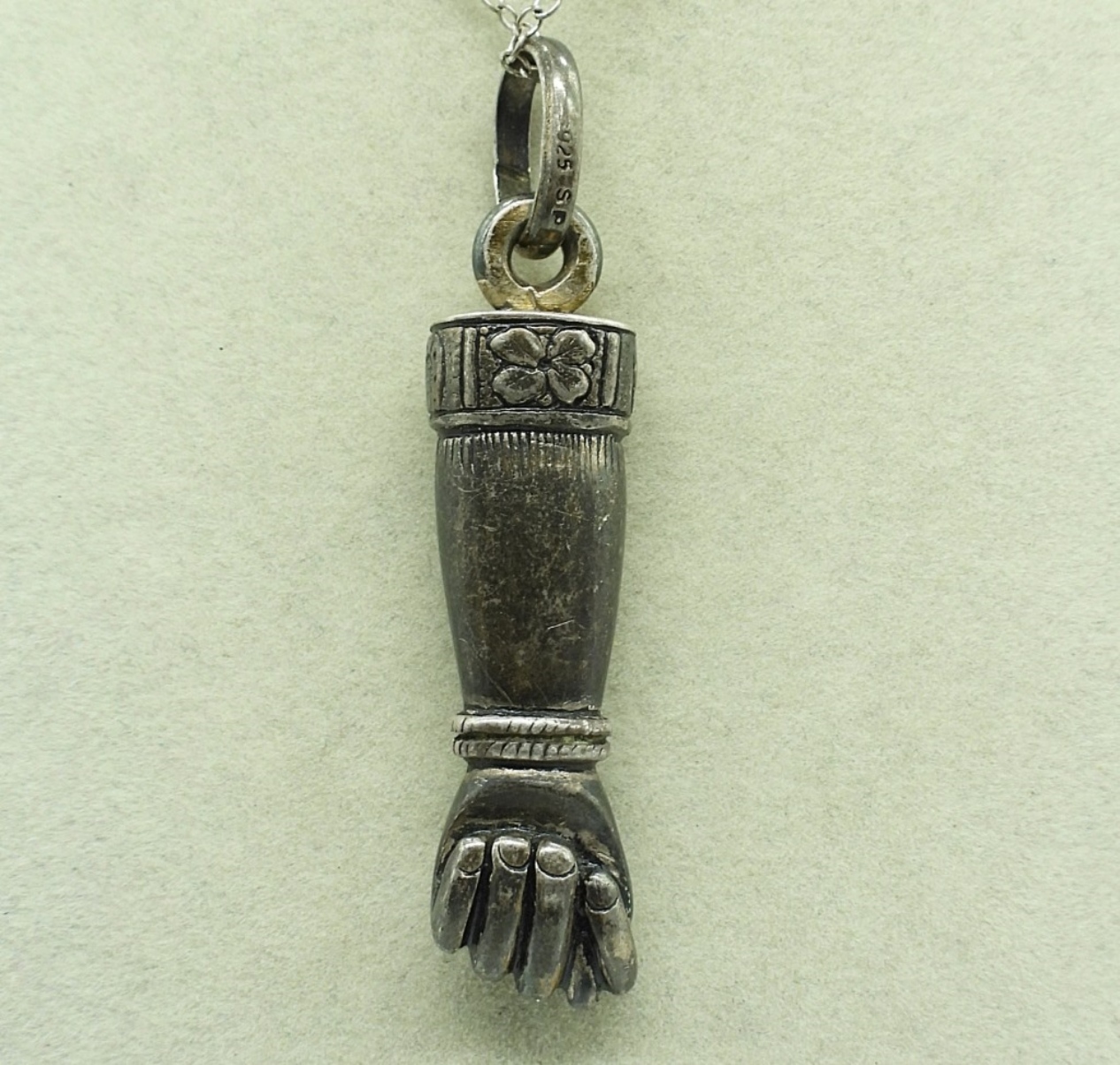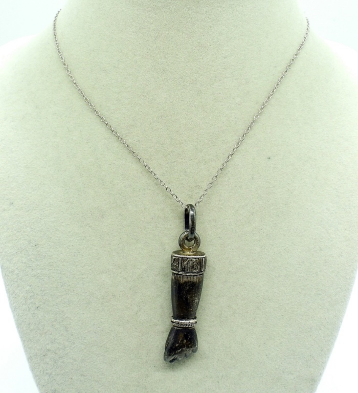 FIGA FIST STERLING PENDANT WITH A 16″ STERLING CHAIN. 16.1 DWT